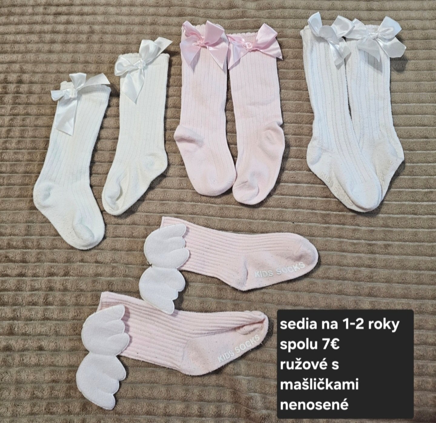 Nové podkolienky Veľkosť 0-1 rok Vo farbách - biela, bledoružová, bledomodrá, zlatá a krémová Veľkosť 1-2 roky Vo farbách - modrá, sivá, staroružová Cena 3€ Pár