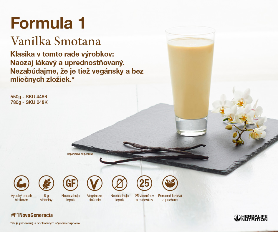 Pre zdravú výživu a udržanie hmotnosti: Nahraďte jedno jedlo koktailom Formuly 1 a doprajte si dve nutrične vyvážené jedlá.