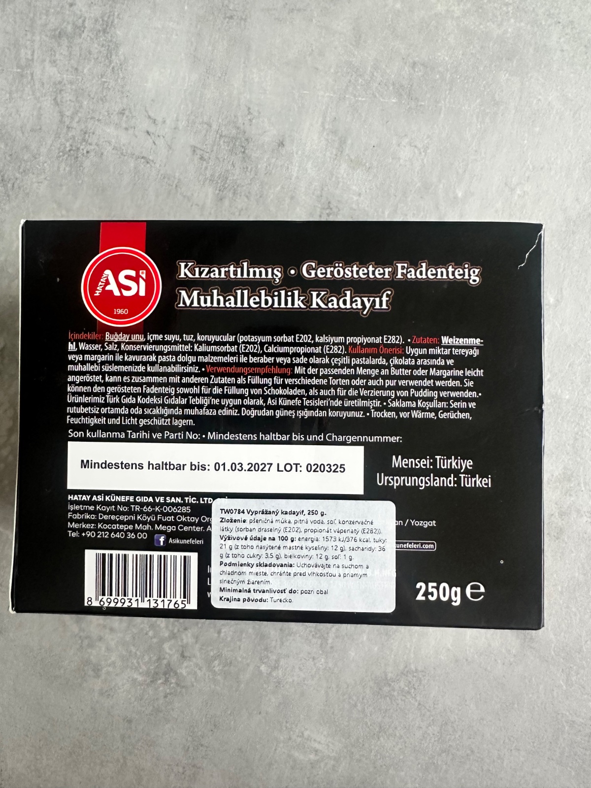 Ponúkam na predaj originálny turecký pražený kadaif značky ASI KÜNEFE, 250 g. Tento tradičný jemný vlasový cestovinový základ je už tepelne upravený – pražený, takže šetrí čas pri príprave dezertov.