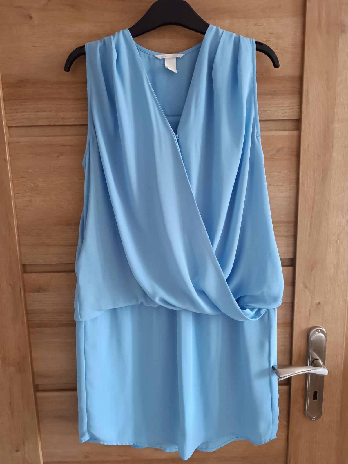 Svetlo modré šaty H&M - S - 5€ parádne zakryjú popôrodné krivky:)