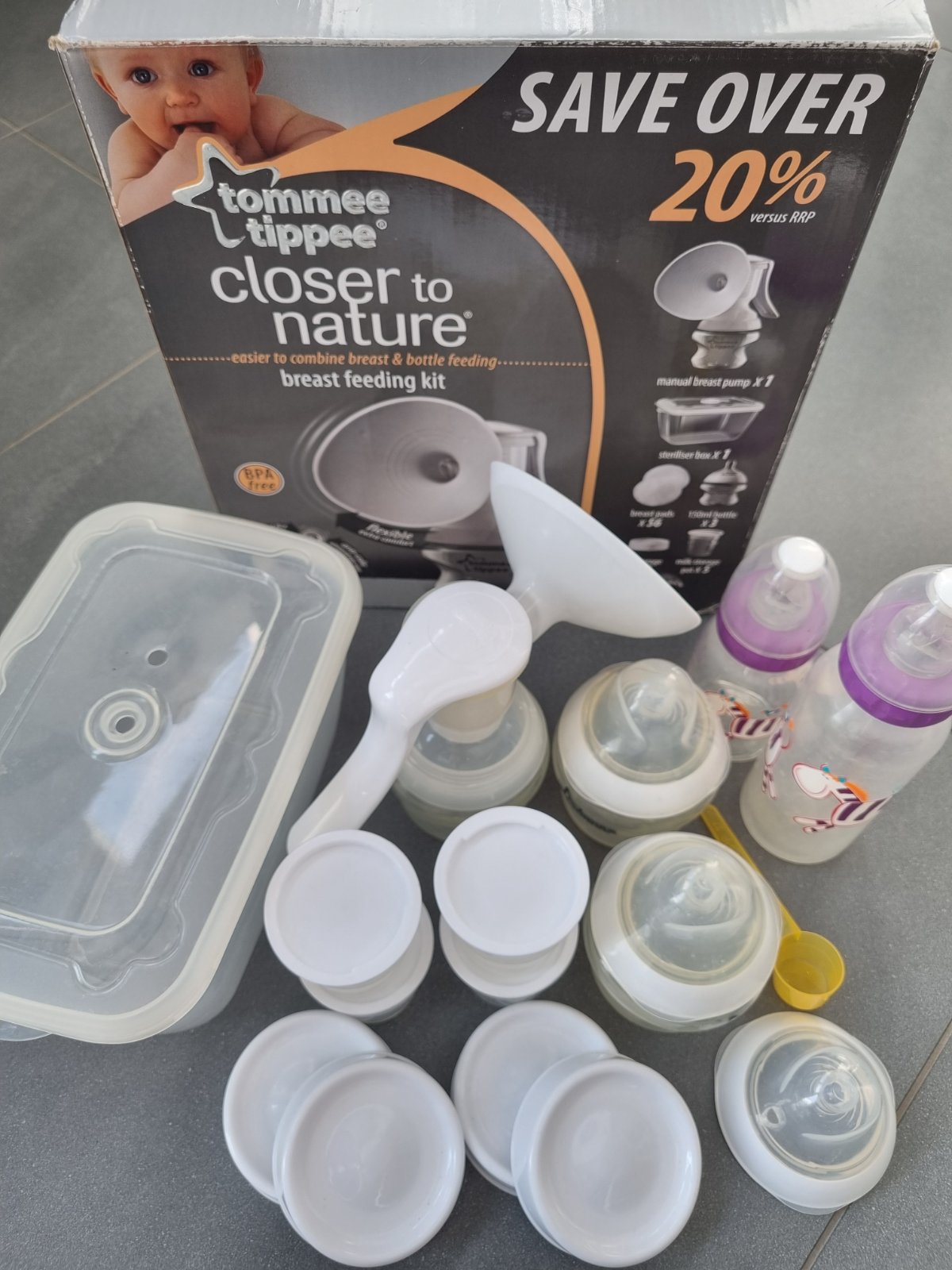Ručná odsávačka na mlieko Tommee Tippee, veľká sada + 2 fľašky navyše, len vyskúšané, nakoniec nebolo potrebné:-)