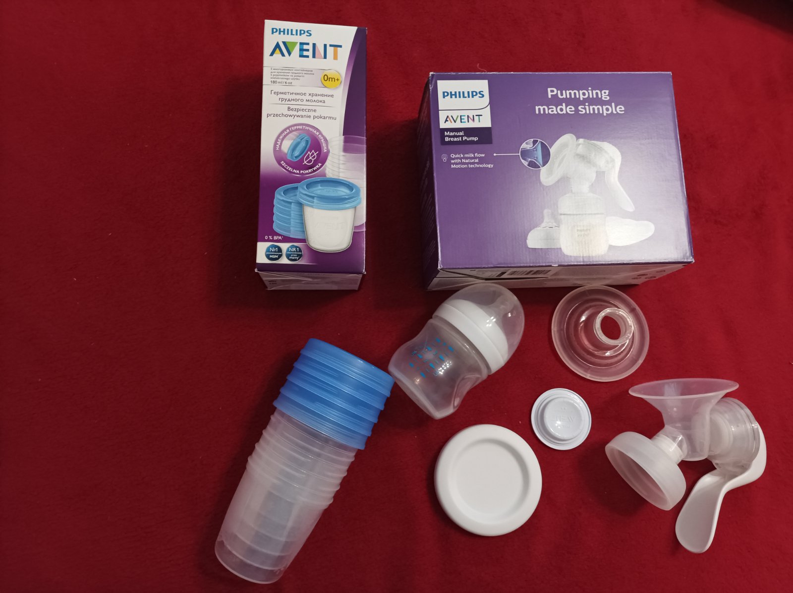 Ručná odsávačka mlieka značky Philips Avent iba odskúšaná. K tomuto prikladám 5 pohárikov na uskladnenie mlieka a vložky do podprsenky. Možná dohoda