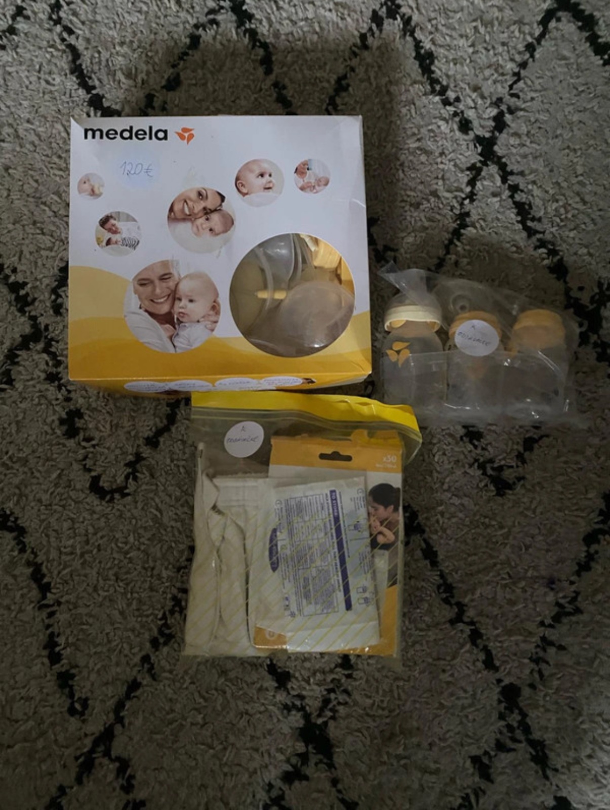Odsáva oba prsníky naraz. K odsávačke je podprsenka na odsávanie - cize odsávanie bez rúk. Pridám fľašky medela , sáčky na mlieko a obsahuje aj náhradné príslušenstvo.