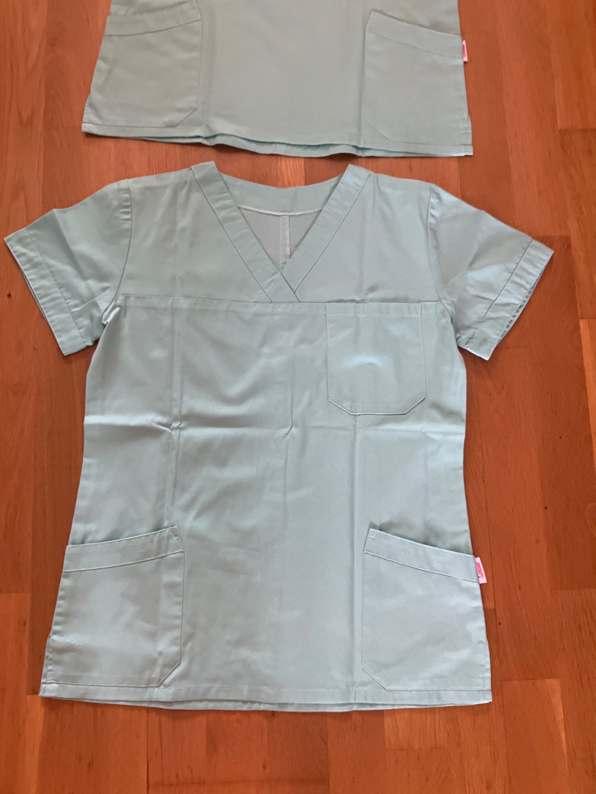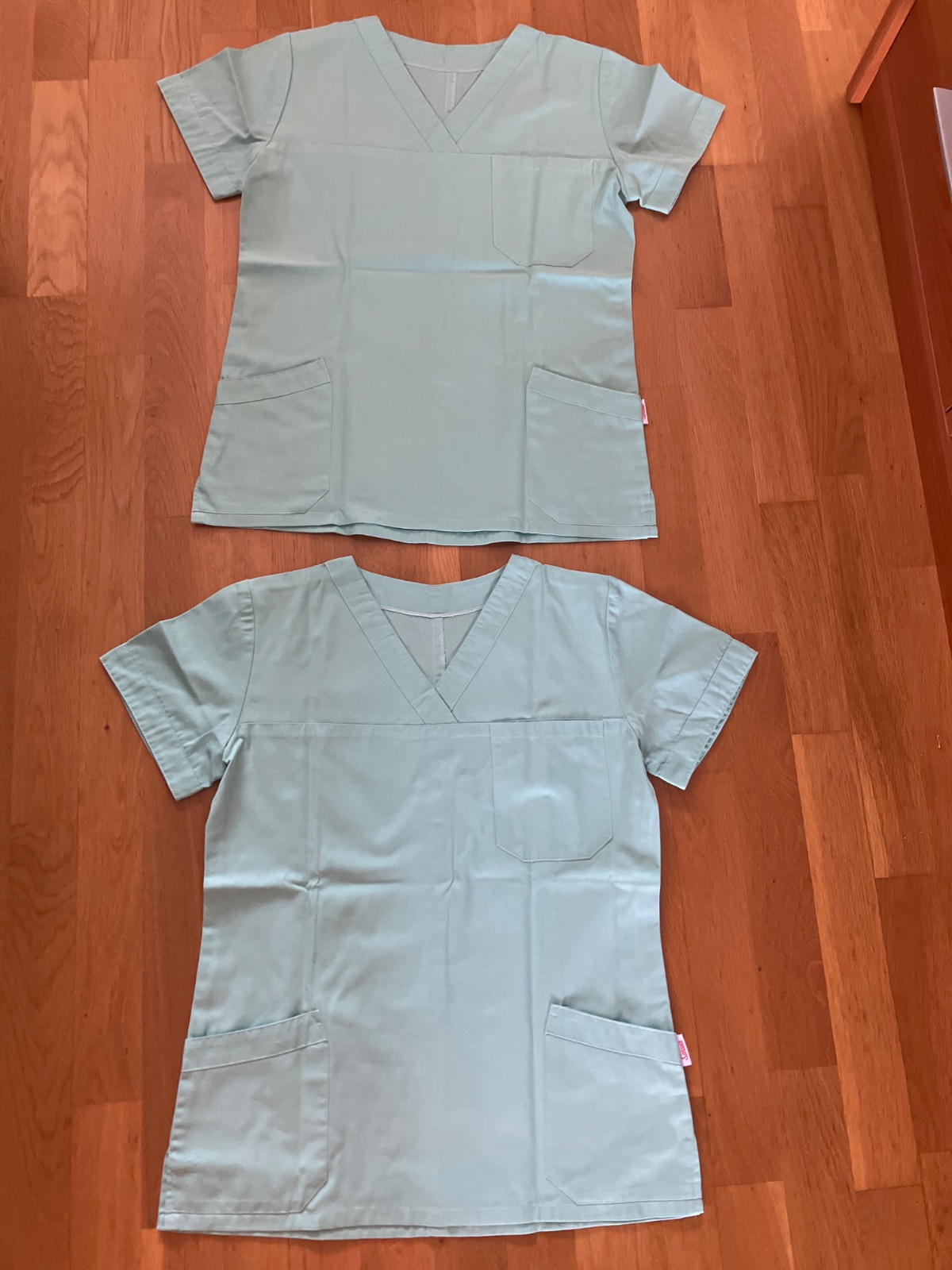 Zdravotnícke košele v dobrom stave, bez flakov a poskodeni. Material 52% bavlva, 48% polyester, pranie na 60•c . Cel.dlzka-66cm, sirka popod pazuchy-50 cm x 2. Kus za 5€.