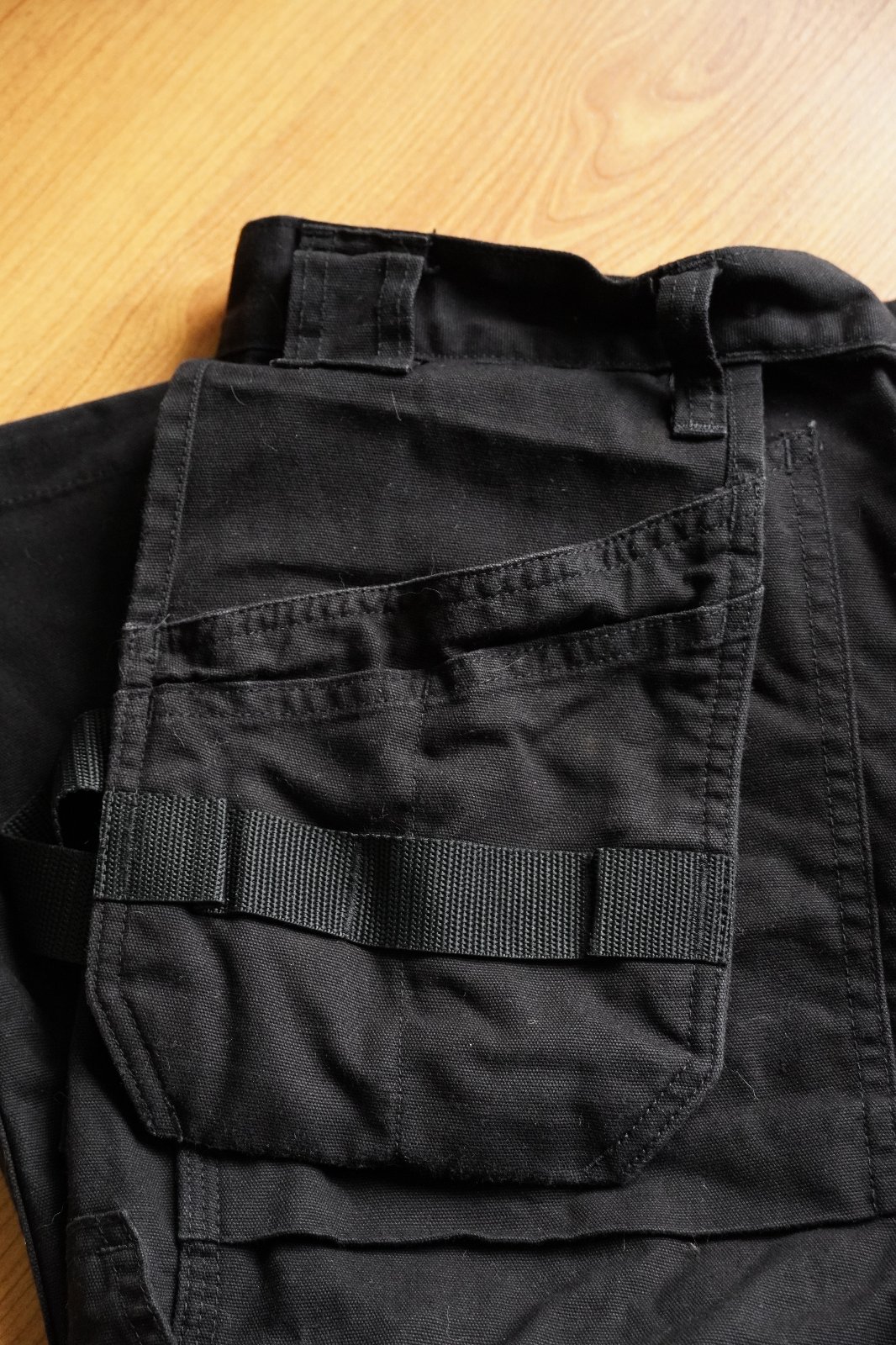 2 visiace zasúvateľné predné vrecká zosilnené Cordurou, 2 predné a zadné vrecká extra priestranné, vrecko na meter, ceruzku, telefón a na náradie.