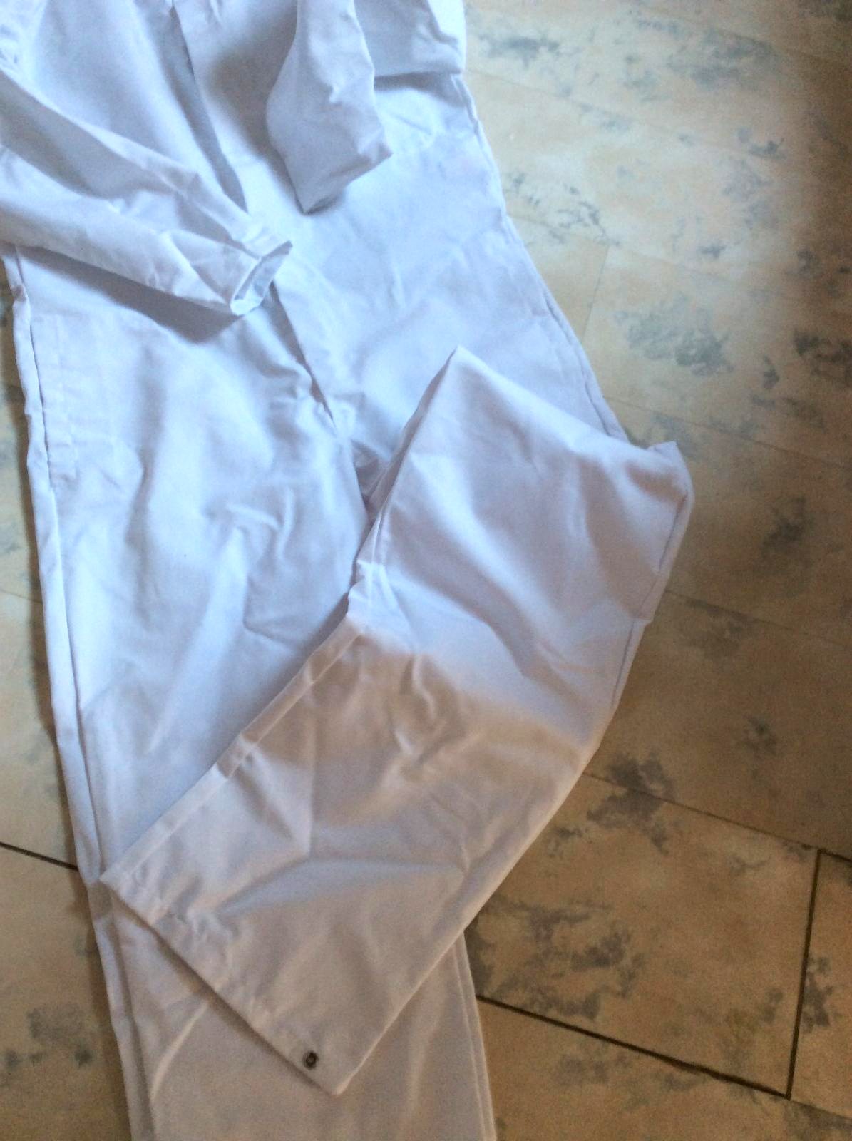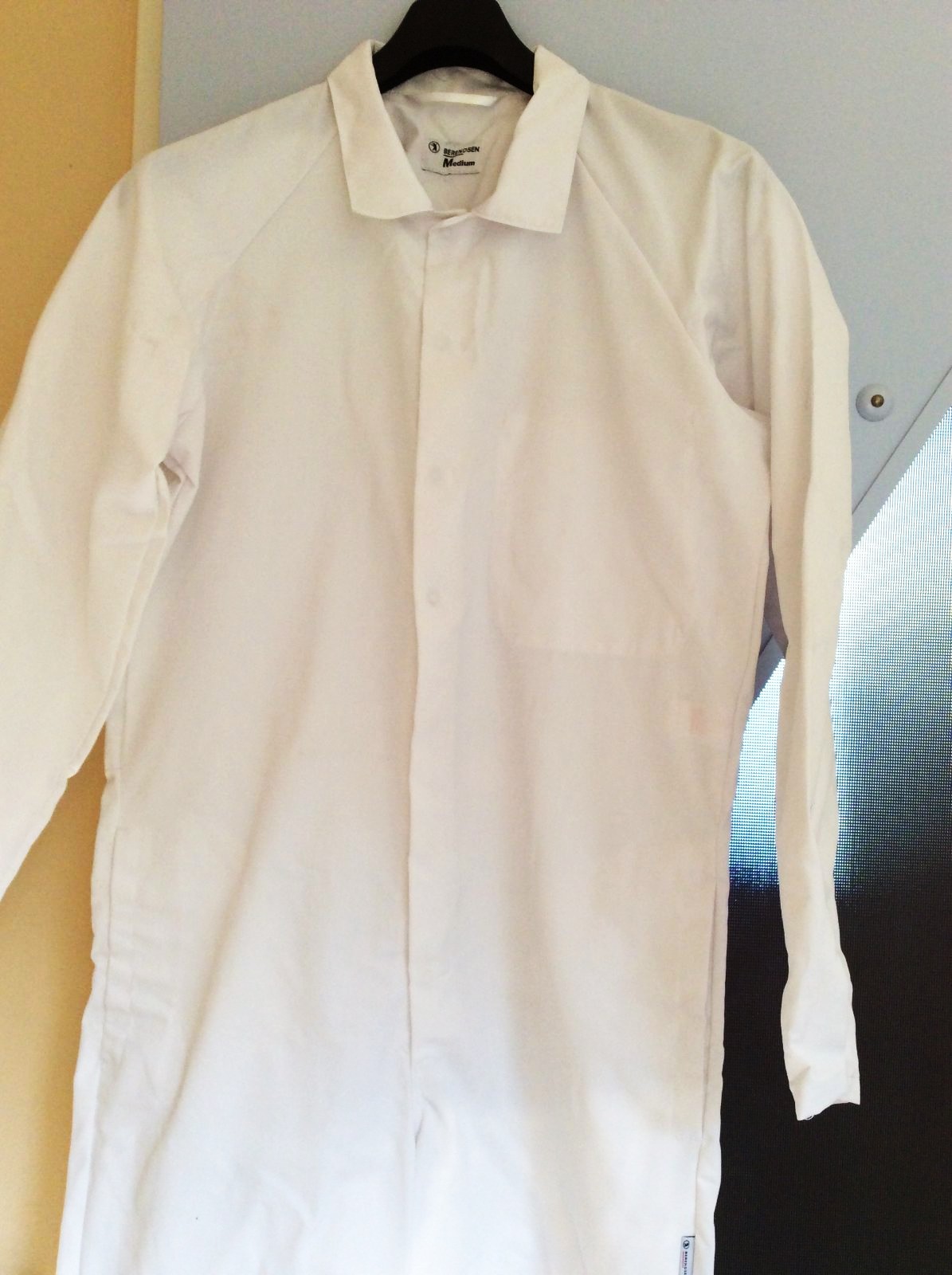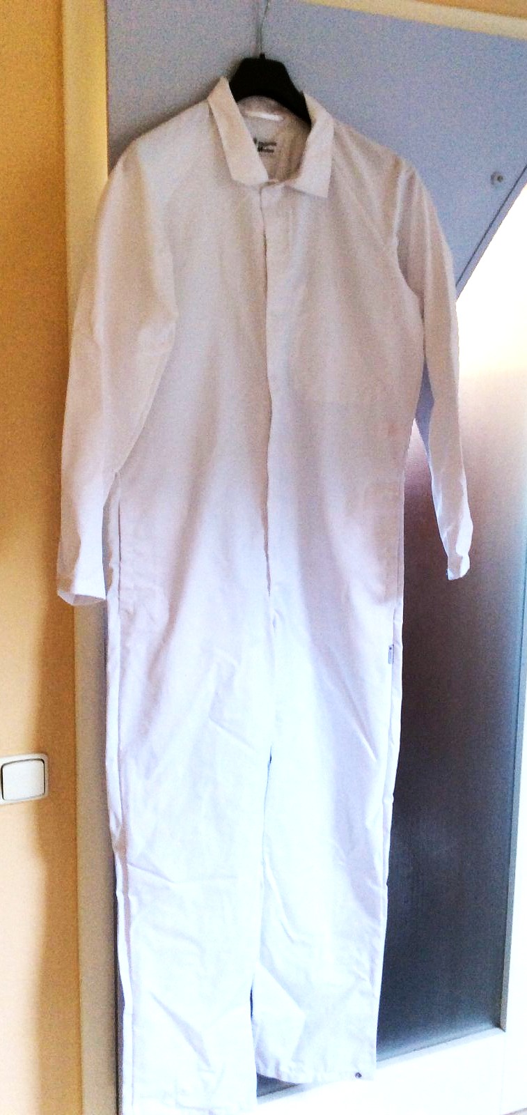 vysoko kvalitná hrubá a pevná pracovná kombinéza,krásne ušitá a kvalitne vypracovaná, s upínaním na manžete rukáve,s vreckami, zapínanie na patenty,veľmi kvalitný materiál a švy,krásne riešená,dá sa povedať nezničiteľná,čo sa týka materiálu,vhodná na výskum - do laboratória,do sterilného alebo infekčného prostredia , v potravinárskom priemysle,zdravotníctve a podobne,65 % polyester,35 % bavlna,