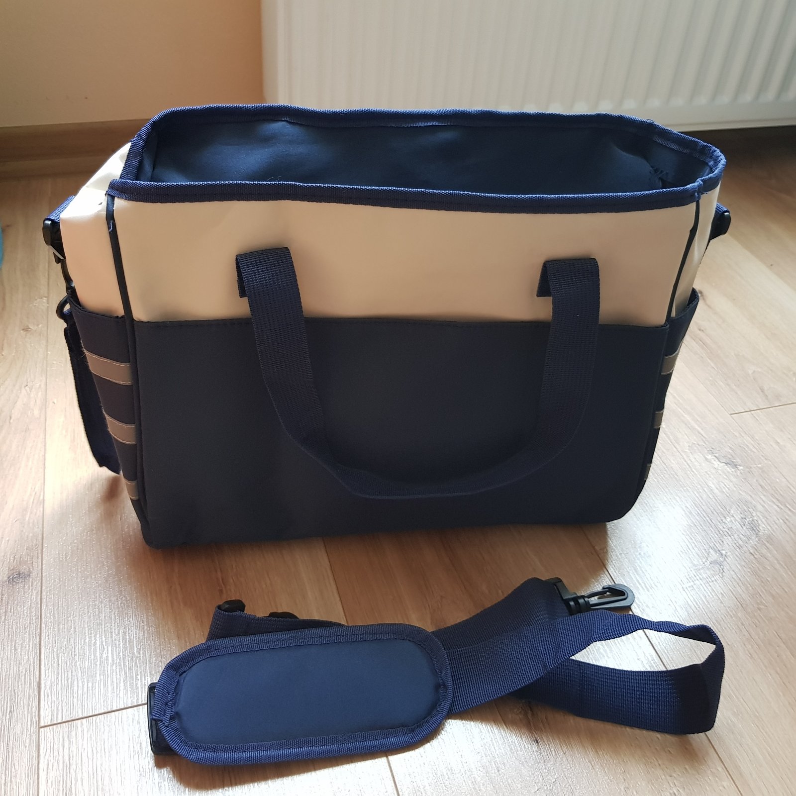 nepoužívaná, ale aj napriek tomu sa odpárala bočná časť- posledná foto, vyzerá to ľahko zašiť- sú tam dierky, zohľadnené v cene.