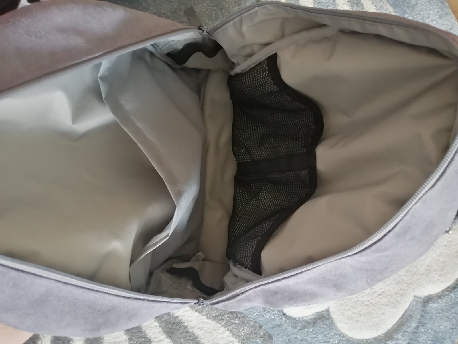 V hlavnej priehradke má 3 vnútornými vreckami (2 sieťované 1 látkové) a pútka na uchytenie 2 fľašiek. Má aj vonkajšie vrecko uzatvárateľné na zips. Nastaviteľná dĺžka popruhov.