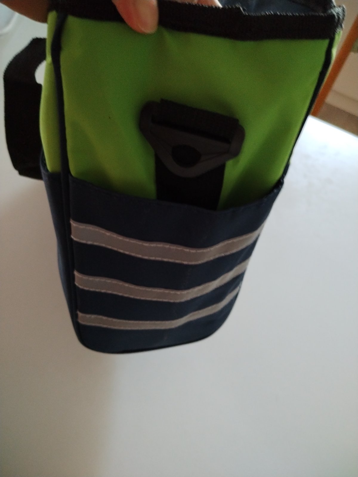 Je veľmi praktická, nie veľká ani mala. A pekná. Ma popruh na rameno alebo 2ks na kočík.