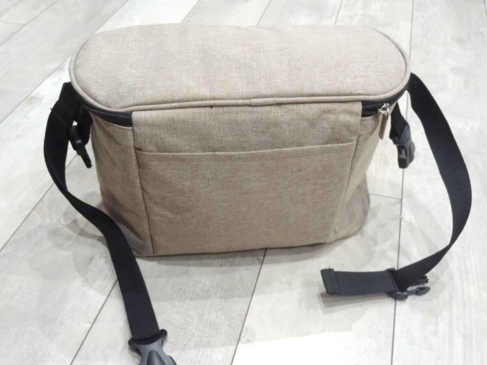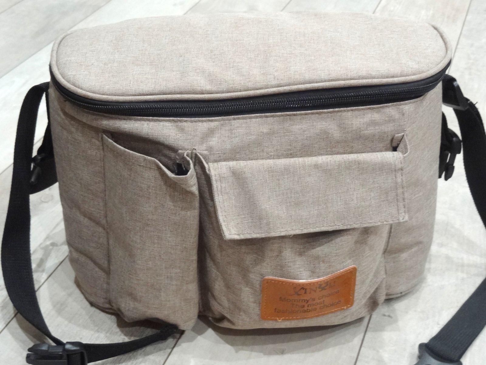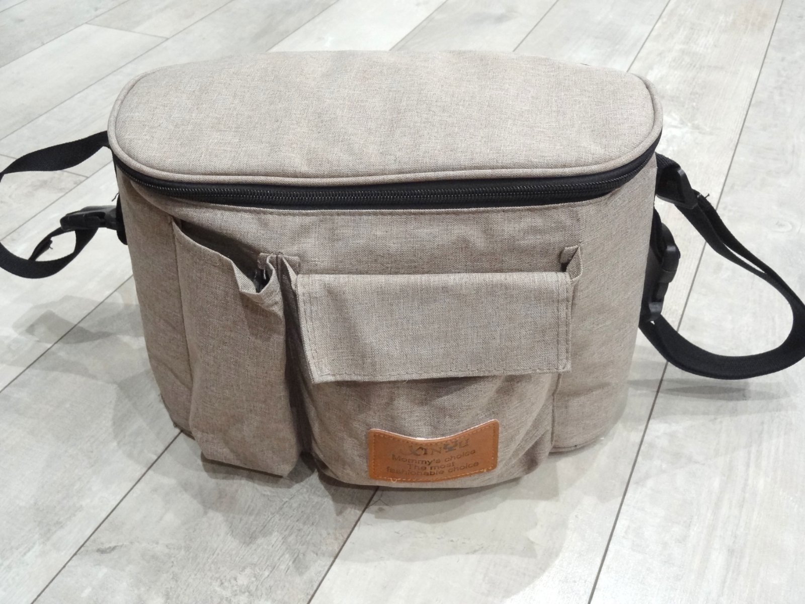 Organizér taška na kočík, vodeodolný materiál, zapínanie na zips, taška sa upevňuje ku kočíku pomocou pevných praciek, vo výbornom stave, rozmer 30 x 20 x 18 cm, značka: XINCU