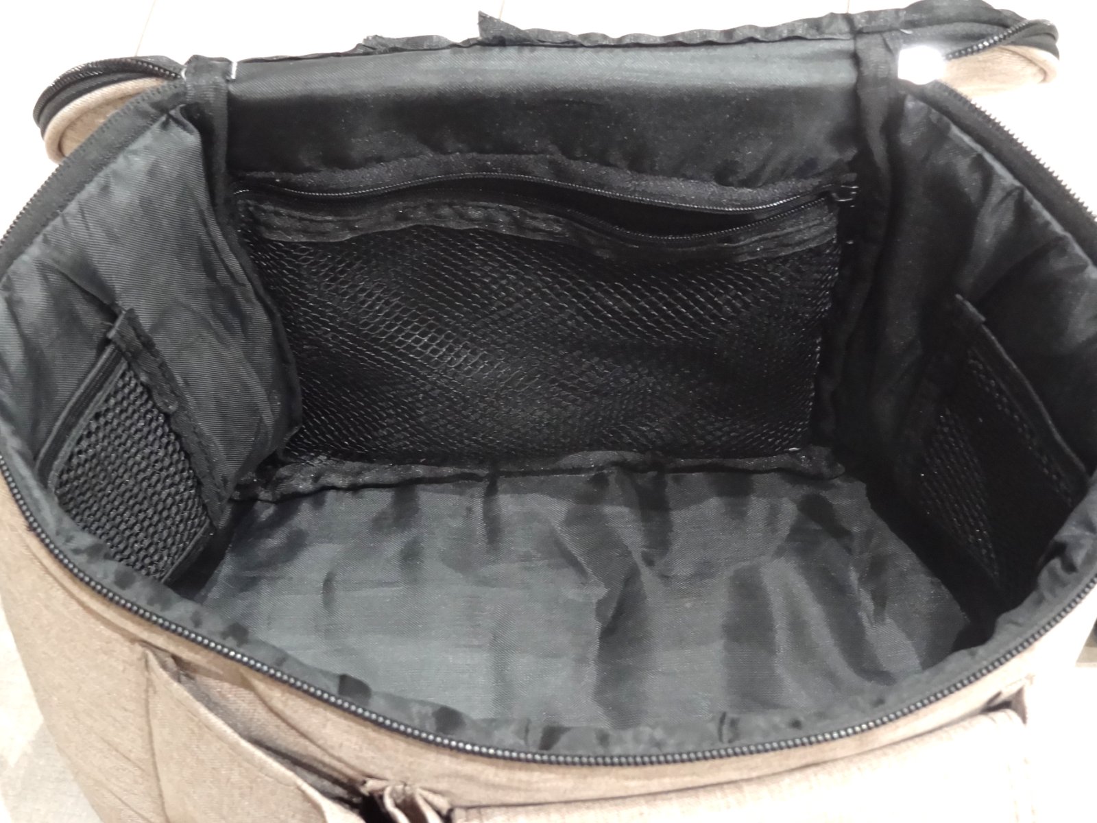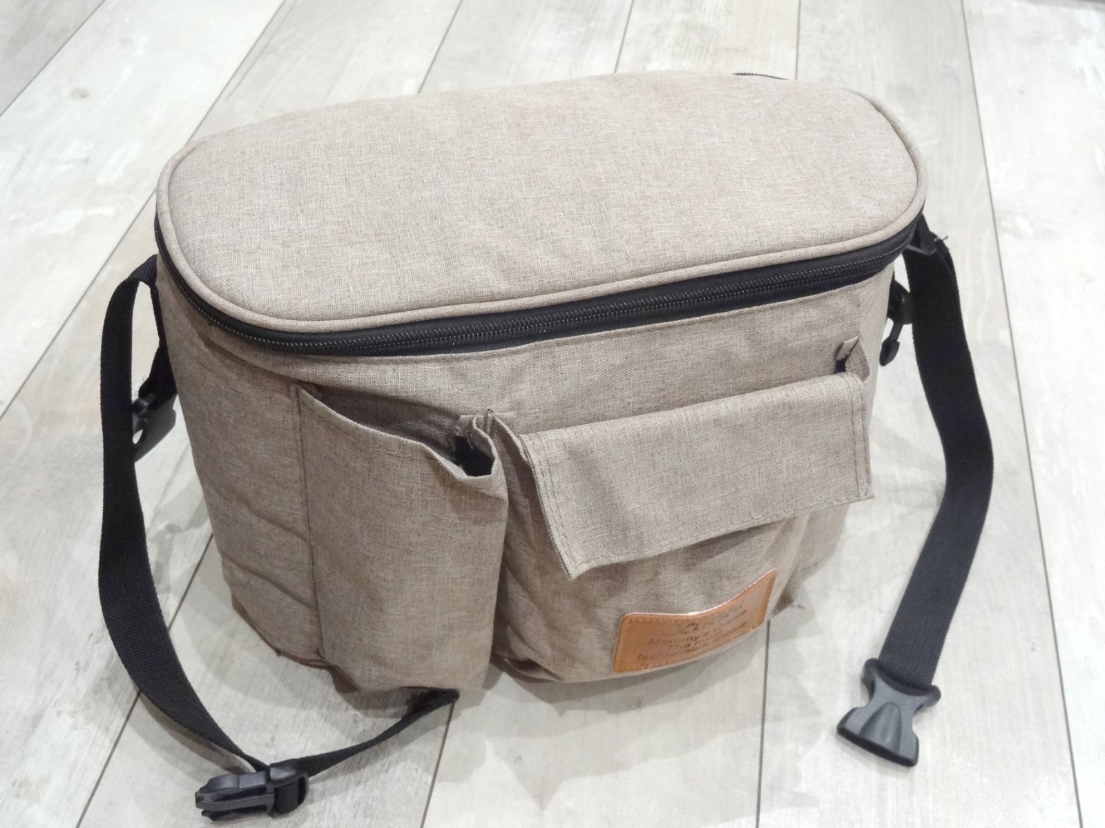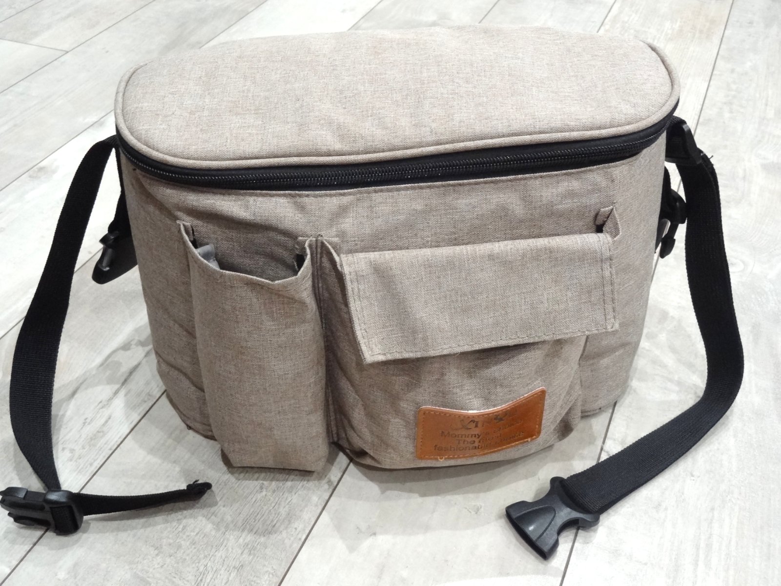 Organizér taška na kočík, vodeodolný materiál, zapínanie na zips, taška sa upevňuje ku kočíku pomocou pevných praciek, vo výbornom stave, rozmer 30 x 20 x 18 cm, značka: XINCU