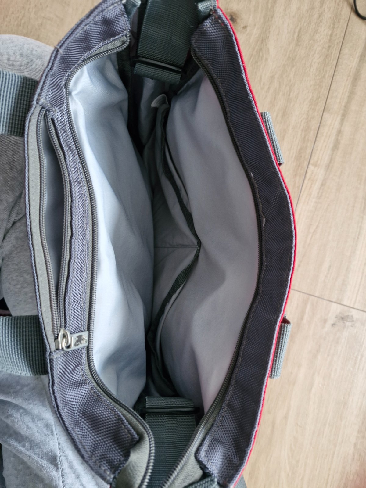 Taška je čista nepoškodena s rozmermi 37 cm x 34 cm. Je veľmi dobre riešena po bokoch ma ukladací priestor na flašu a ma množstvo ukladacieho priestoru a priečinkov.