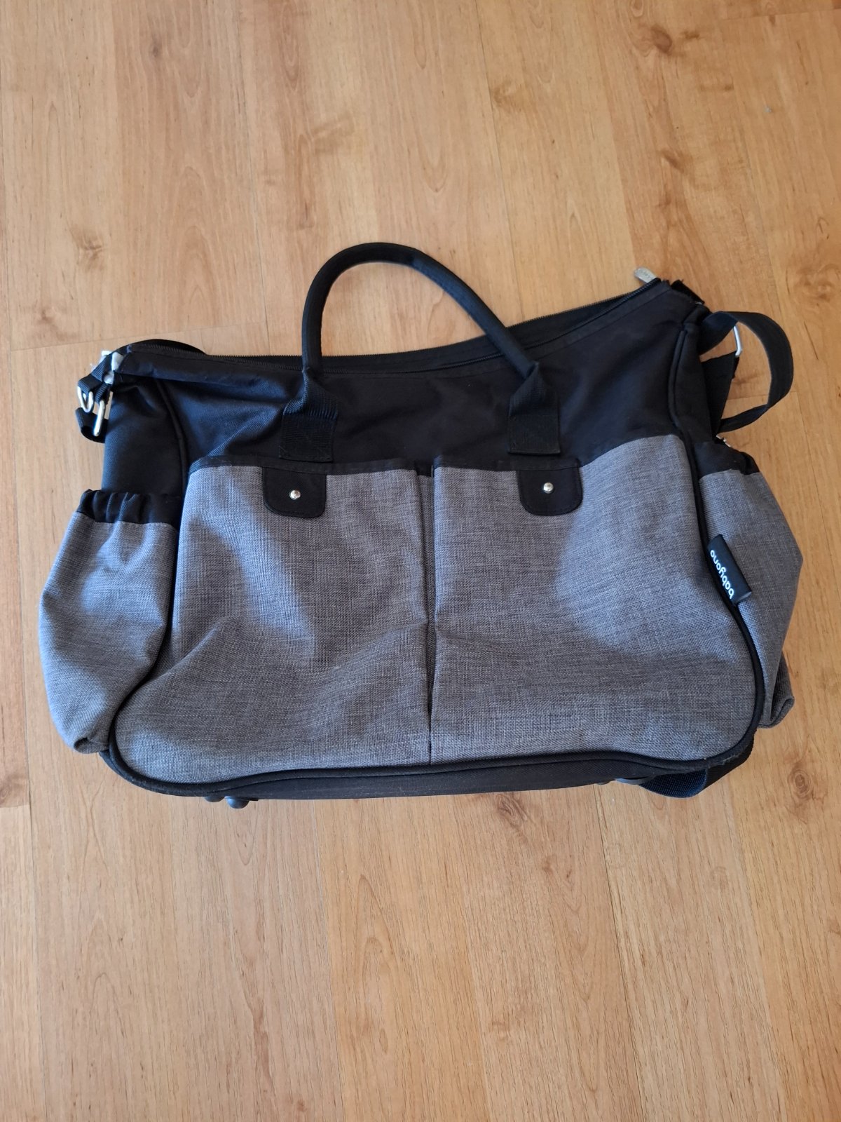 Krásna, priestranná taška na prebaľovanie. Má množstvo priehradou a prebalovaciu podložku. Pasuje na hociktorý kočík, pretože má úchytky na zavesenie priamo na taške. Vo vnútri je fľak, neskúšal...