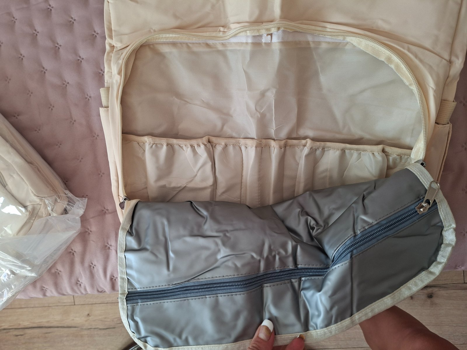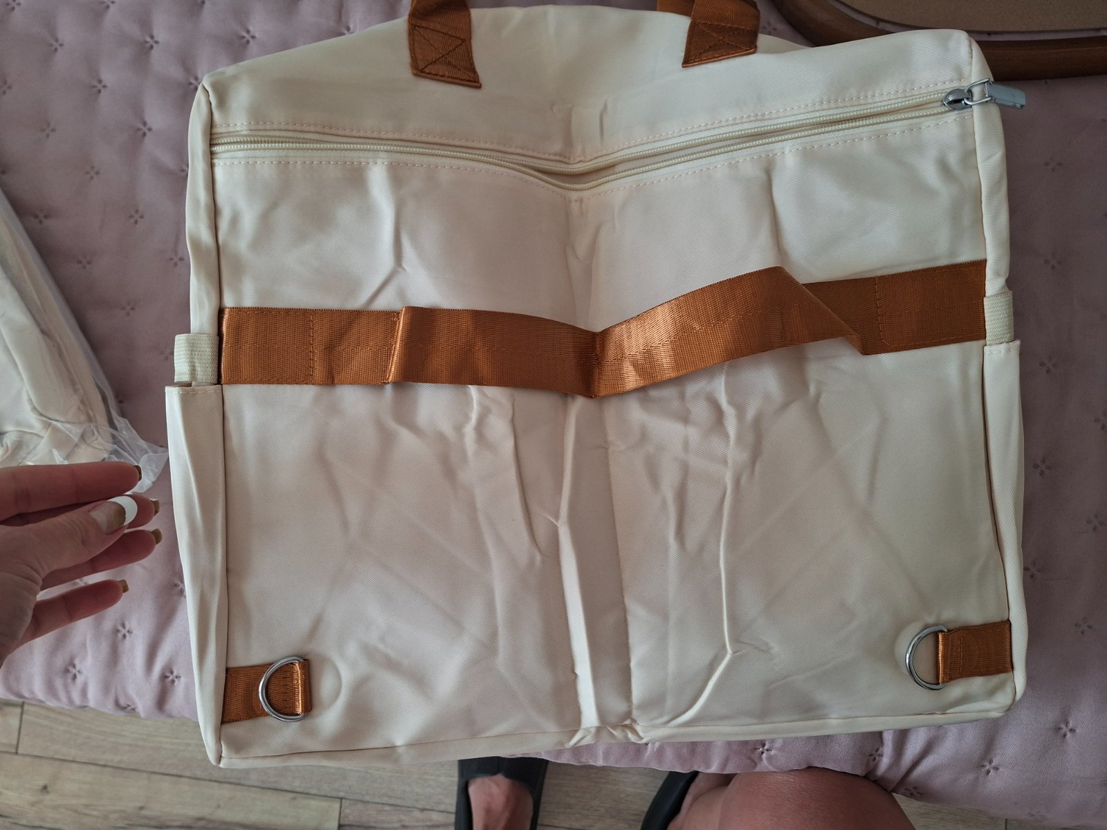 Šikovná taška pre mamičky, môžete použiť aj ako ruksak ( skryté remienka). Má veľa úložného priestoru, zmestite všetko. Omylom som si objednala dve,túto posúvam