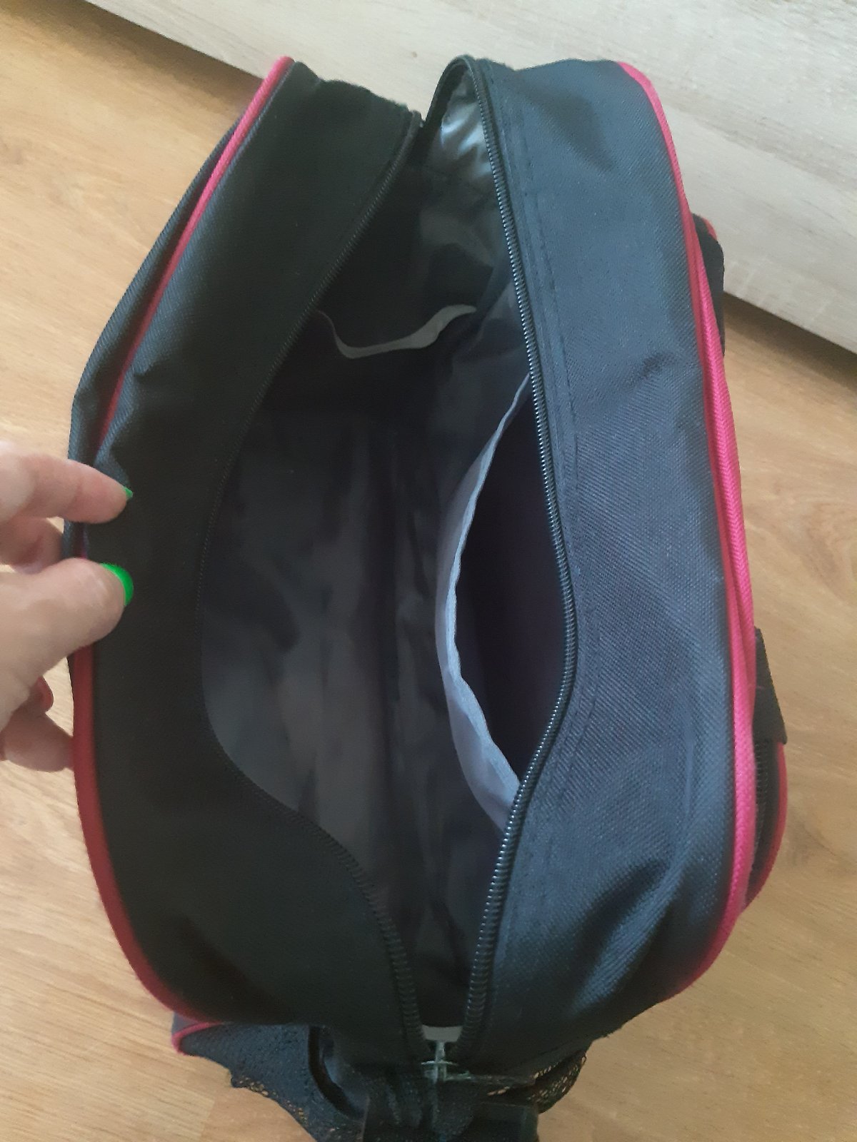 Ma rôzne vrecká, naboku sieťku na fľašu, krátke aj dlhé ramienko.