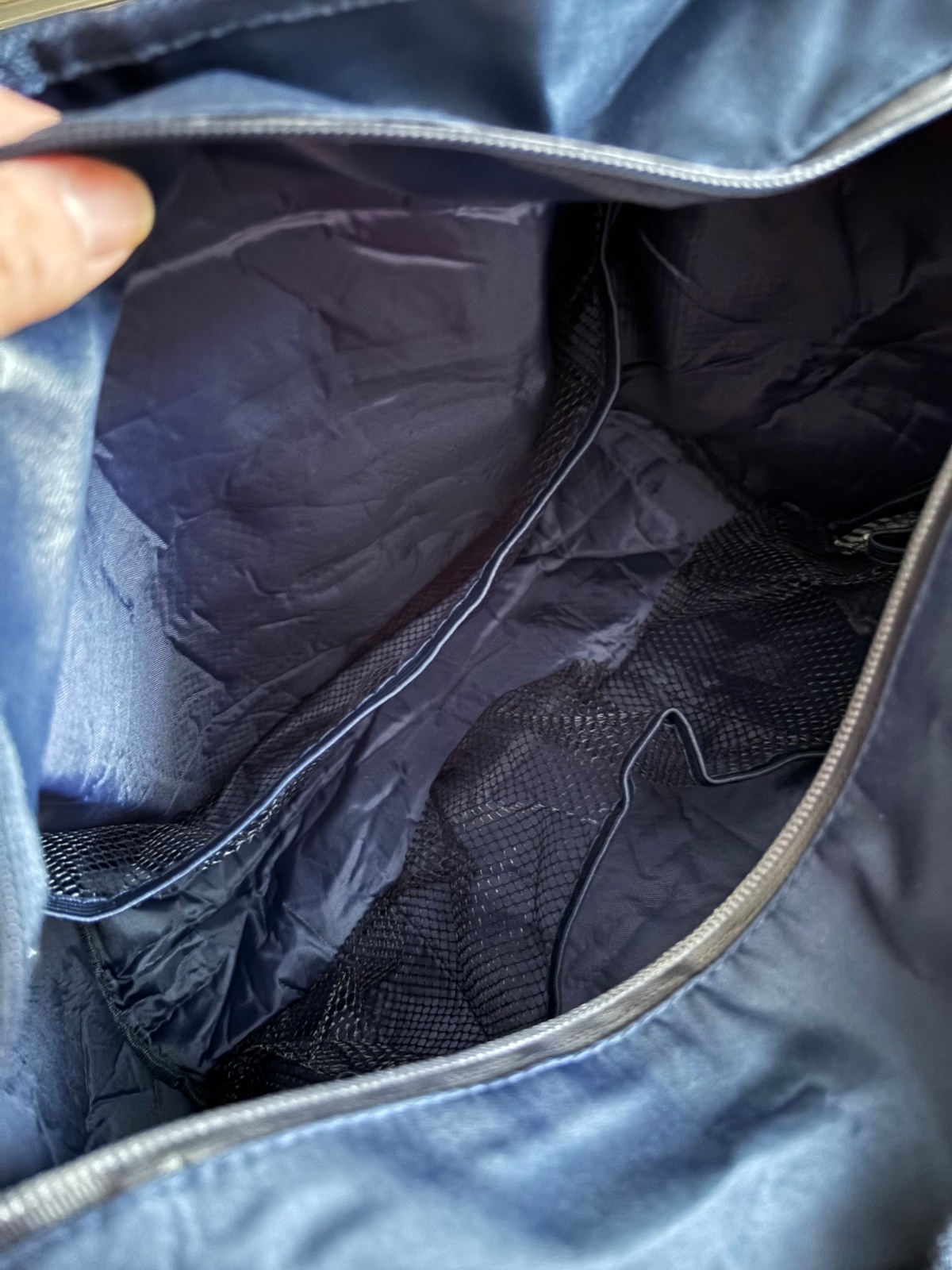 tmavomodra taska, pouzivana asi rok. značka Bambino. nepremokavý material