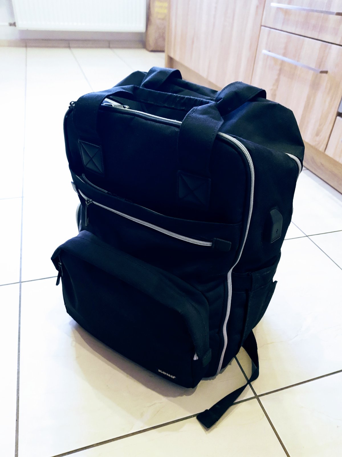 Batoh je vybavený nabíjacím portom USB na bočnej strane tašky (napájací zdroj nie je súčasťou batohu), vďaka čomu je nabíjanie vašich elektronických zariadení na cestách hračkou.