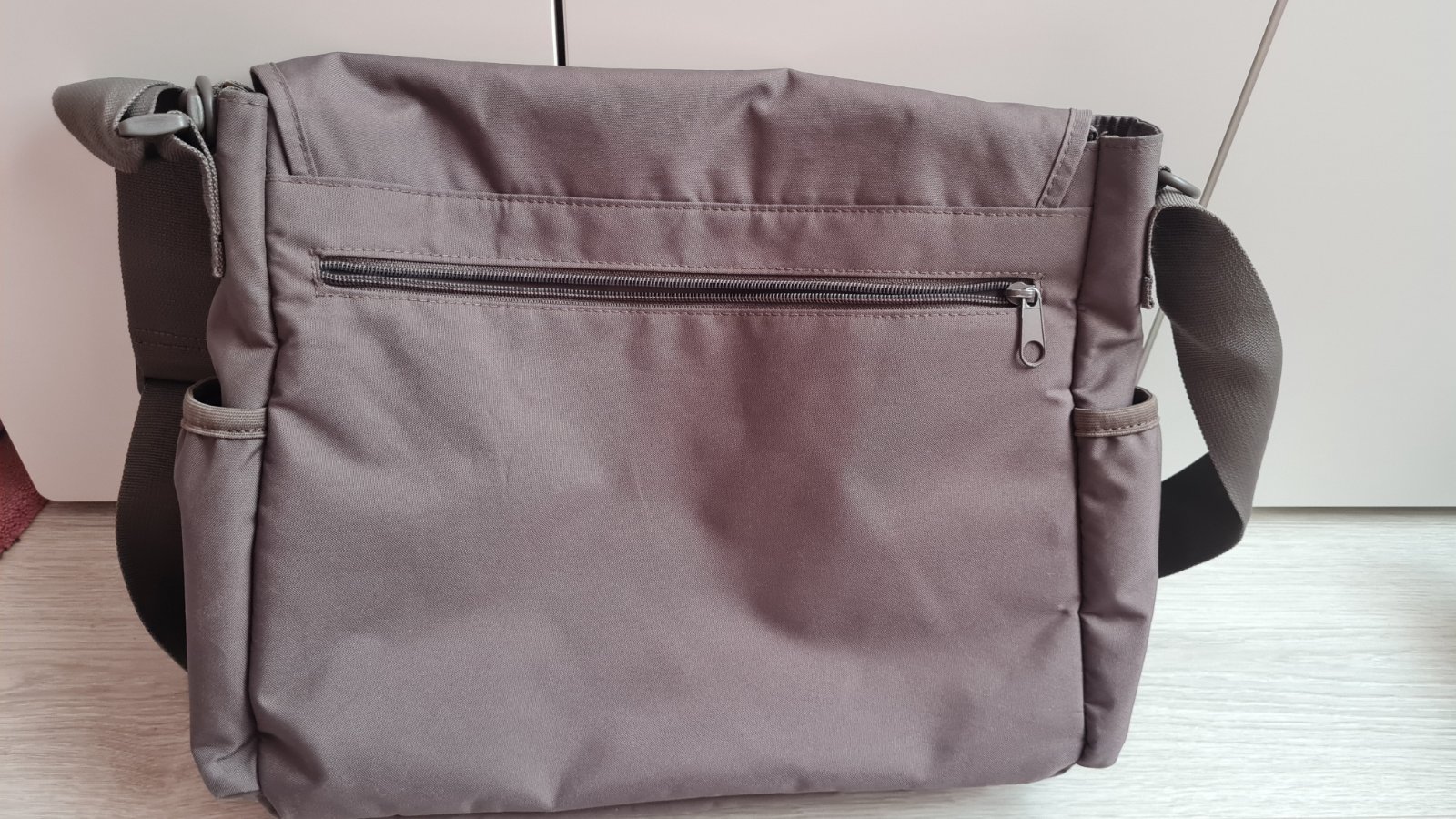 Taska sa da pripnut na madlo kocika aj nosit cez plece.