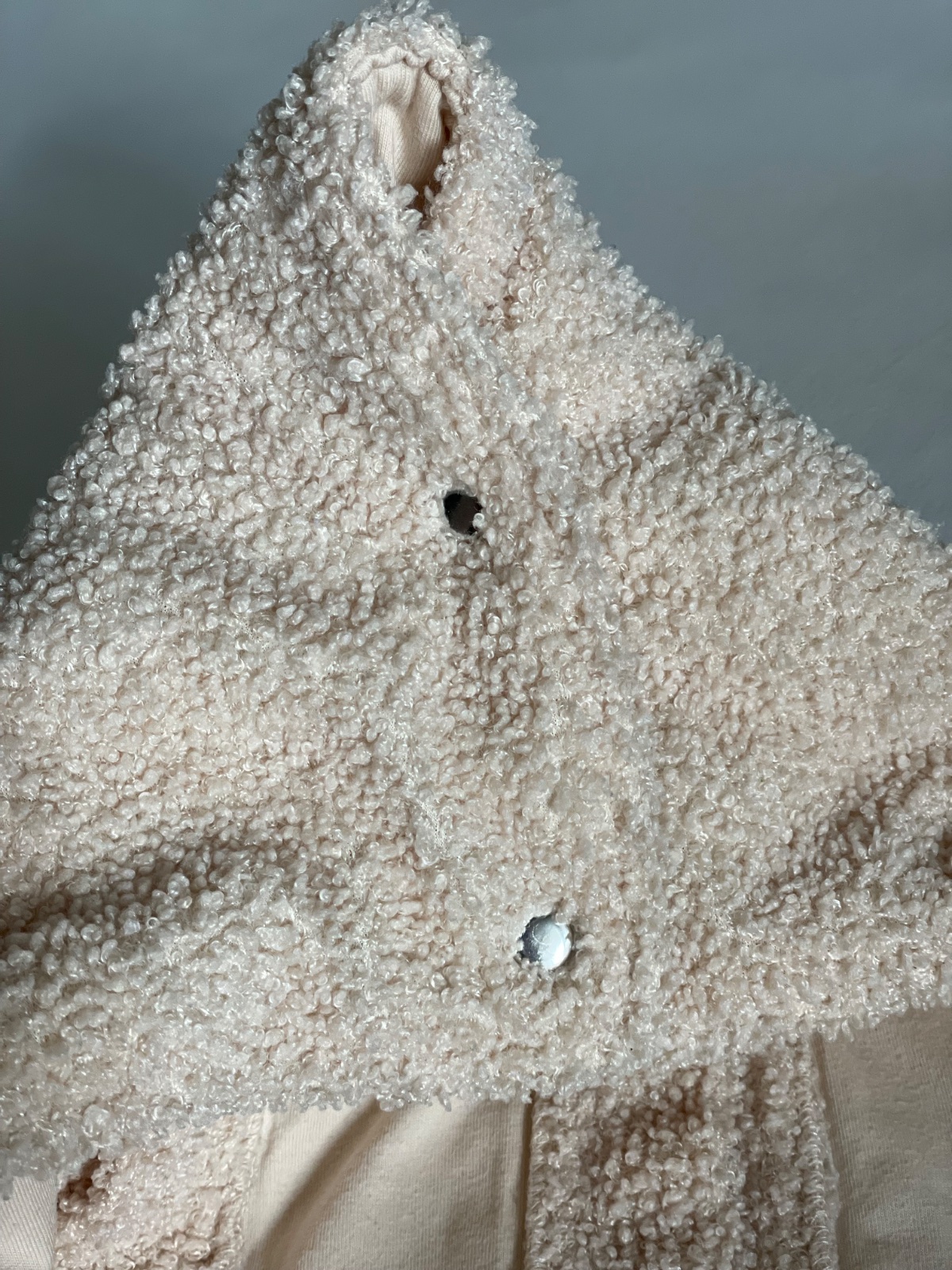 Veľmi pekná, bez poškodeni, da sa vložiť do vajiička, aby sa dalo pripútať babo, 2 cvočky na zapínanie a kapucna na hlavičku