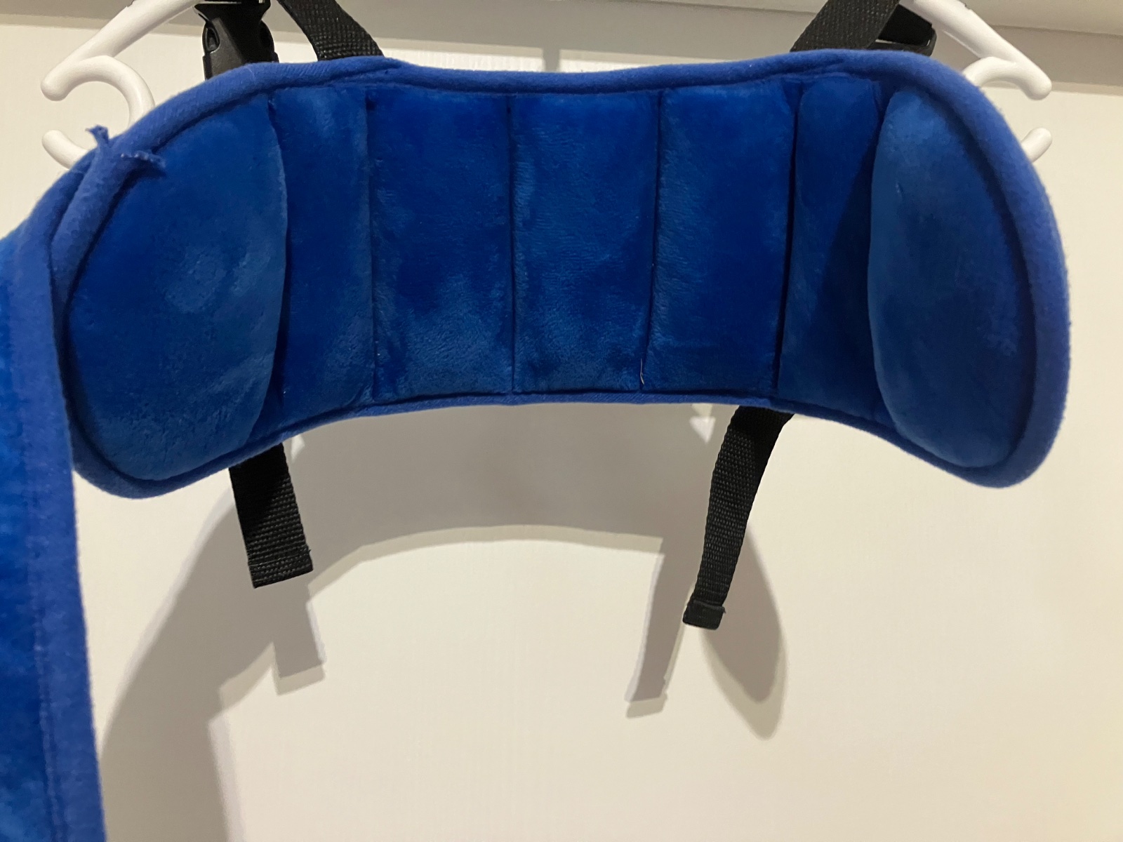 Ochrana detskej hlavy sa montuje do sedacky, nastavitelnymi popruhmi sa upne na detsku sedacku. Pas na celo je na suchy zips, ktory dobre drzi a zaroven ho viete lahko odstranit.