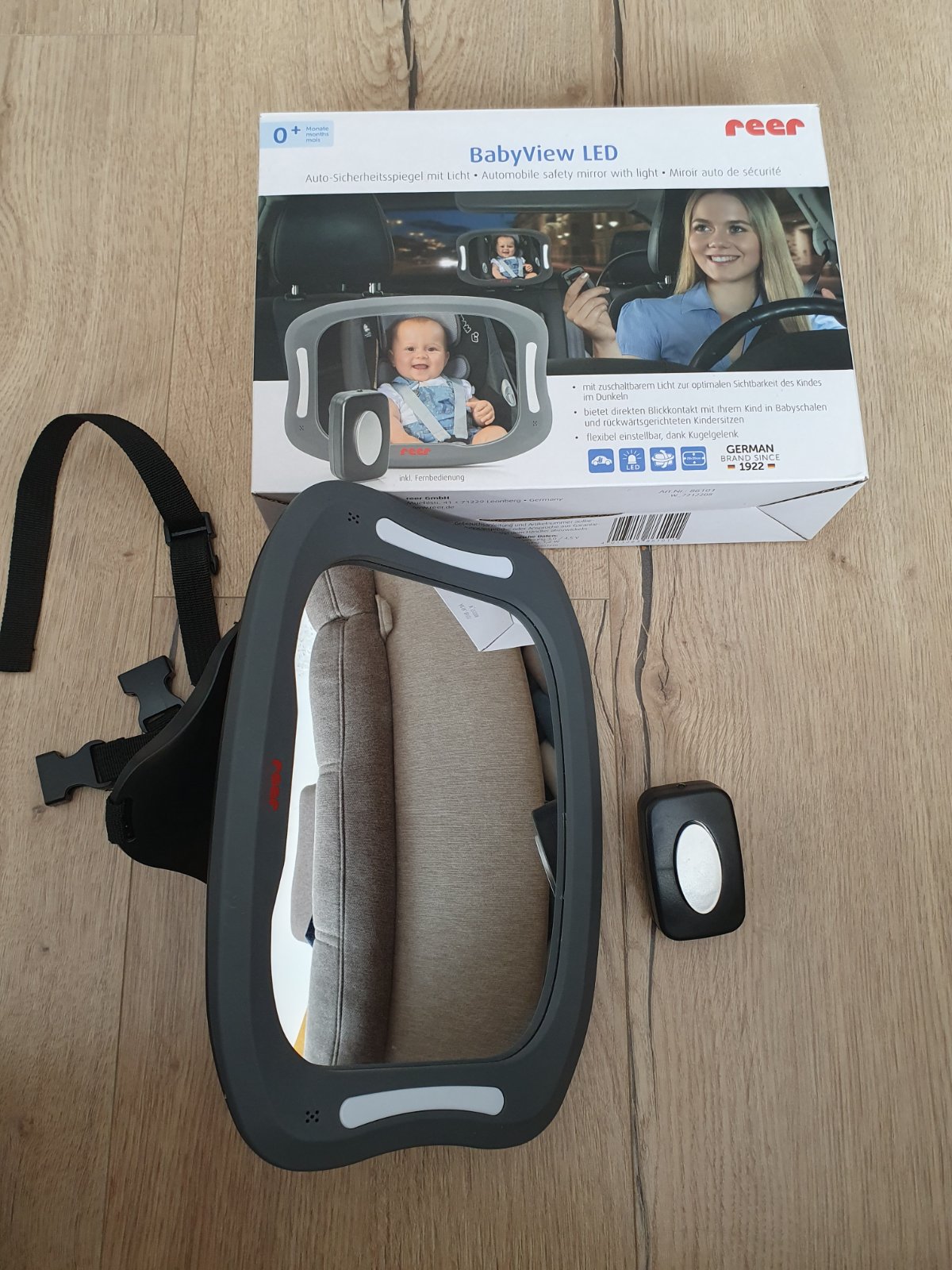 Spätné zrkadlo na sedačku auta, aby bolo možné vidieť na bábätko v protismernej autosedačke. Pripevňuje sa nastaviteľným popruhom na opierku hlavy. Má jemné škrabance. Je z plastu, takze sa nerozbije.