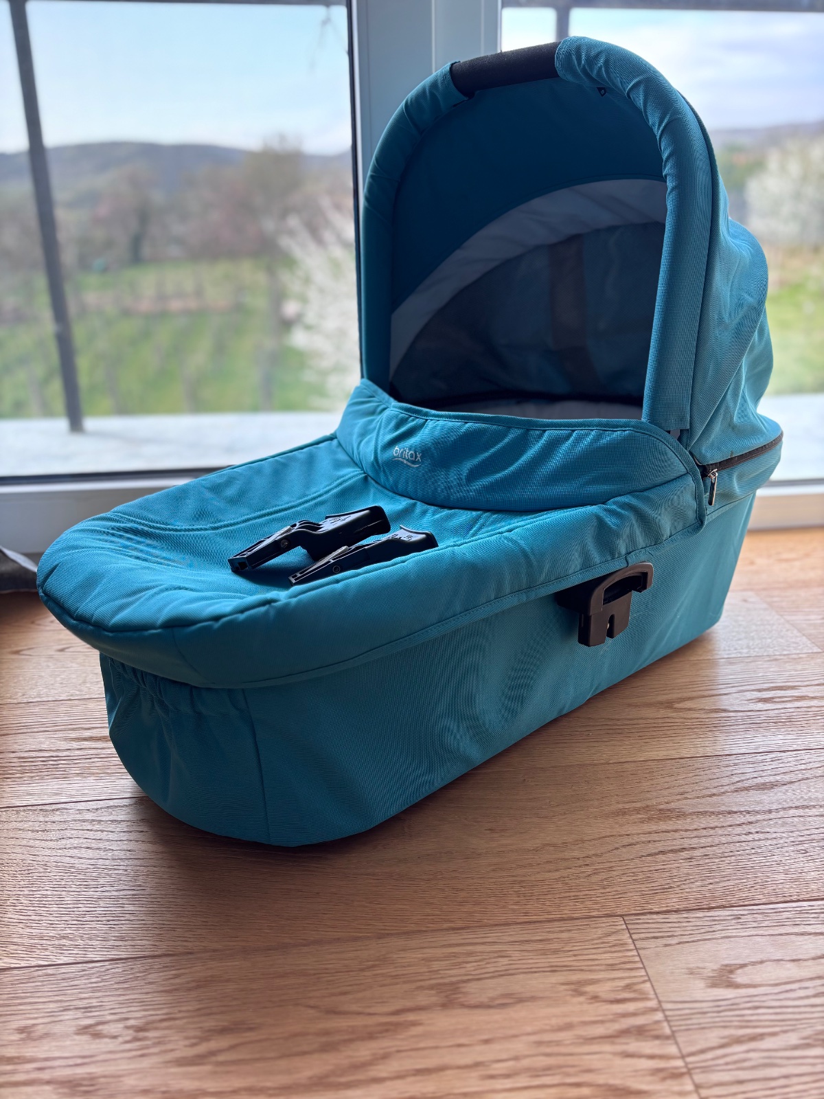 Hlboká vanička Britax, sedí na podvozok kočíka Britax B-motion plus. K vaničke doplnky - sieťka proti hmyzu, slnečná clona, pršiplášť.