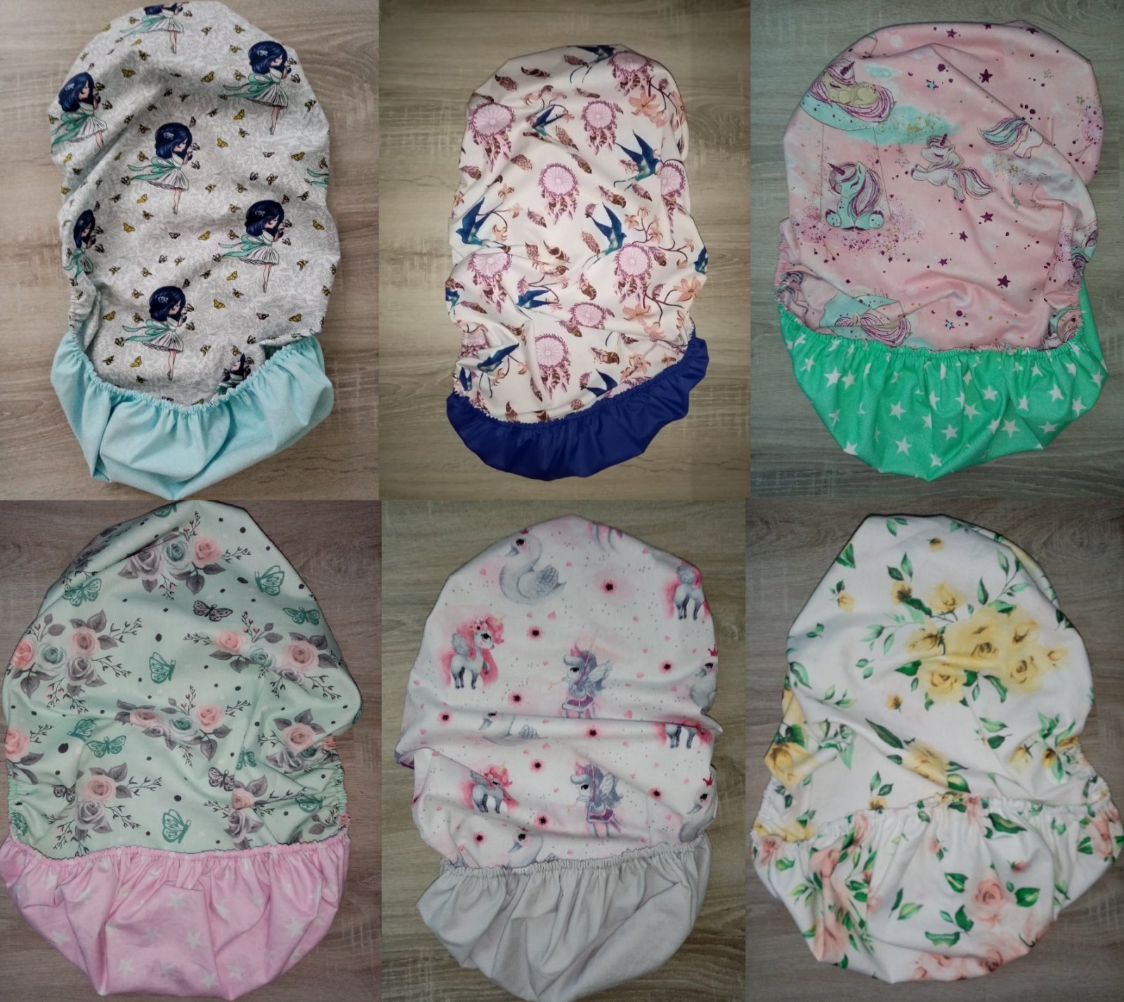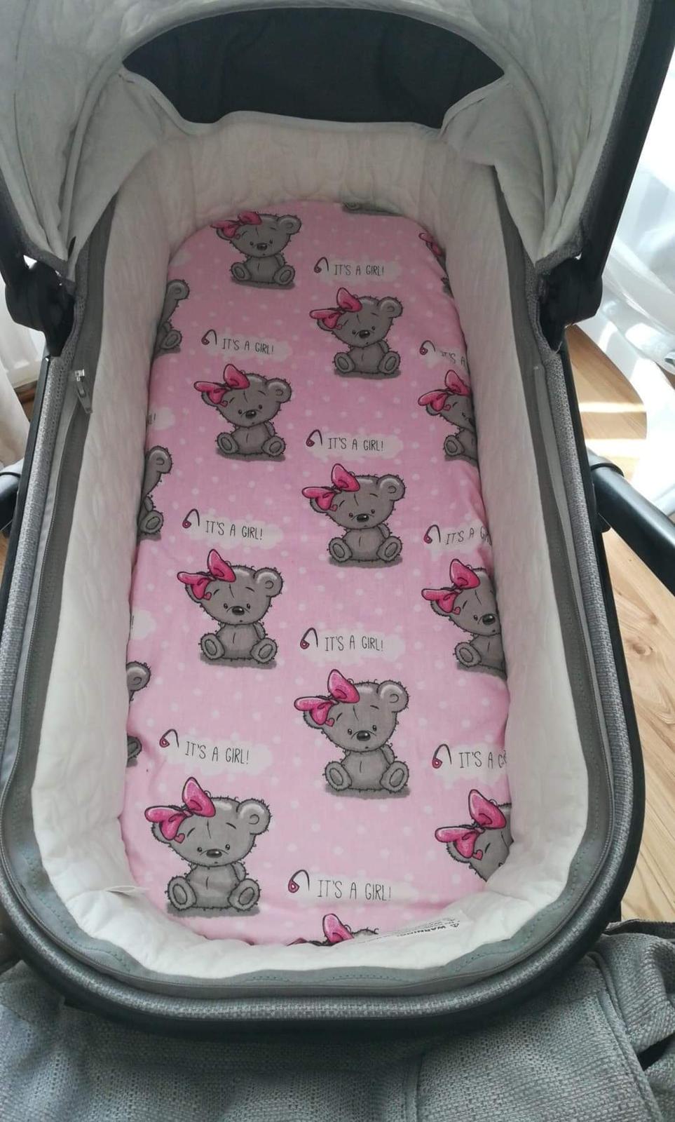 Plachta na podlozku do hlbokeho kocika, obojstranna, 100% bavlna , po obvode stiahnuta gumou, vhodna na podlozku do cca 70-80cm x 30-35cm.