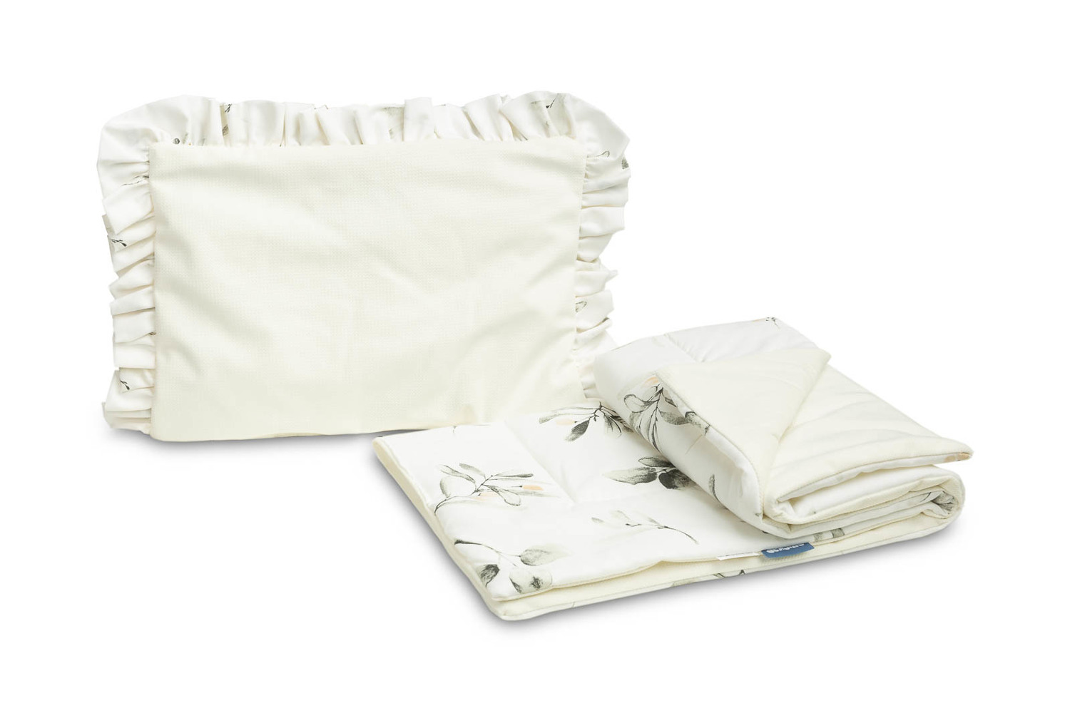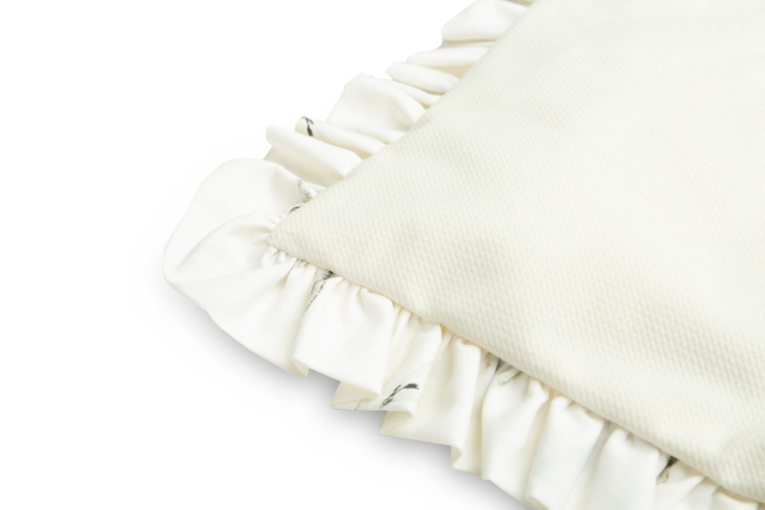 Súprava do kočíka Velvet s volánikom je atraktívna položka v ponuke produktov značky Sensillo. Súprava obsahuje roztomilý vankúšik s volánikom a prikrývku s jemnou výplňou. Obojstranná súprava je vyrobená z vysokokvalitných materiálov – farebnej bavlny a veľmi príjemnej látky velvet, ktorá zaručí pohodlie každému bábätku. Súprava je ideálna do kočíka, postieľky, kolísky alebo ako podložka pre bábätko. Samotný vankúšik môže slúžiť ako maznáčik.