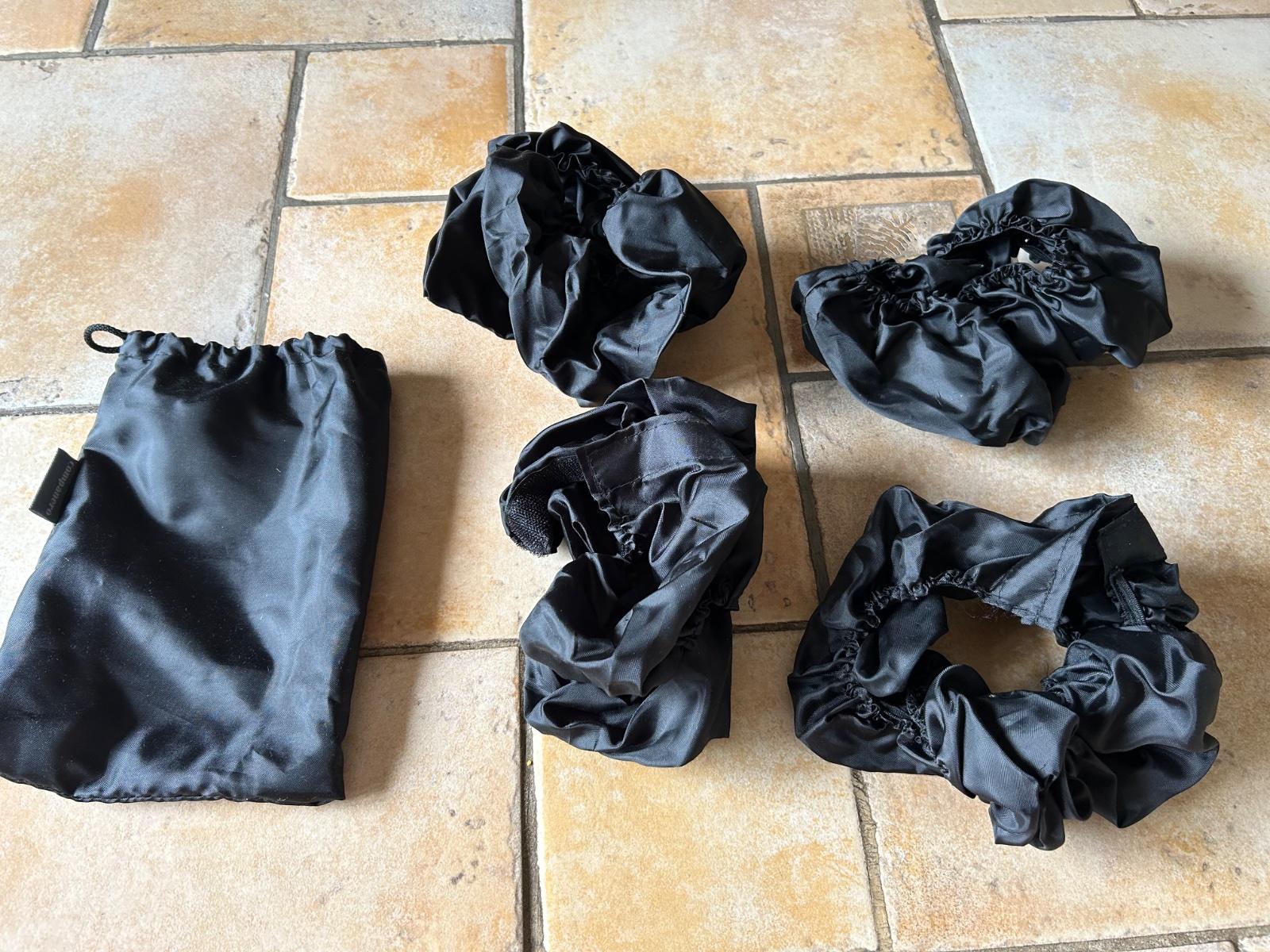 Navleky na kolesa, pouzite jeden krat v aquaparku. Su univerzalne, my sme mali na Bugaboo Fox.