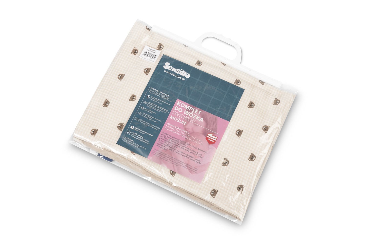 Sensillo Mušelínový komplet do kočíka Medvedíky bé