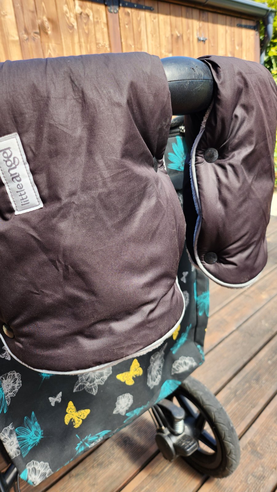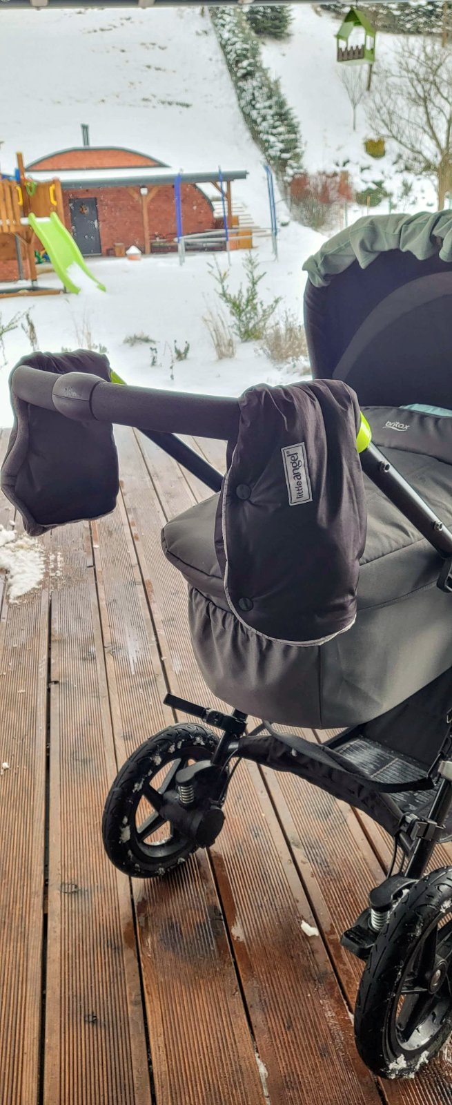 Balenie obsahuje pár dizajnových rukavíc, ktoré ľahko upevníte na rukoväť kočiara pomocou cvokov. Rukavice je možné použiť na klasické kočíky, ale napríklad aj na golfky. Vrchná časť rukavíc je vyrobená z odolného šuštiaka, ktorý ochráni vaše ruky pred mrazom, snehom či vetrom. Vnútro rukavíc je z hebkého a mäkkého wellsoftu. Rukavice vám spríjemnia zimné prechádzky s kočíkom, nech už je počasie akékoľvek. Tieto rukavice sú dostatočne veľké, takže sa v nich v pohode schovajú aj oteckove ruky. Pre lepšiu viditeľnosť sú tieto rukavice opatrené bezpečnostnými reflexnými paspulami. Pôvodná cena bola 24 €