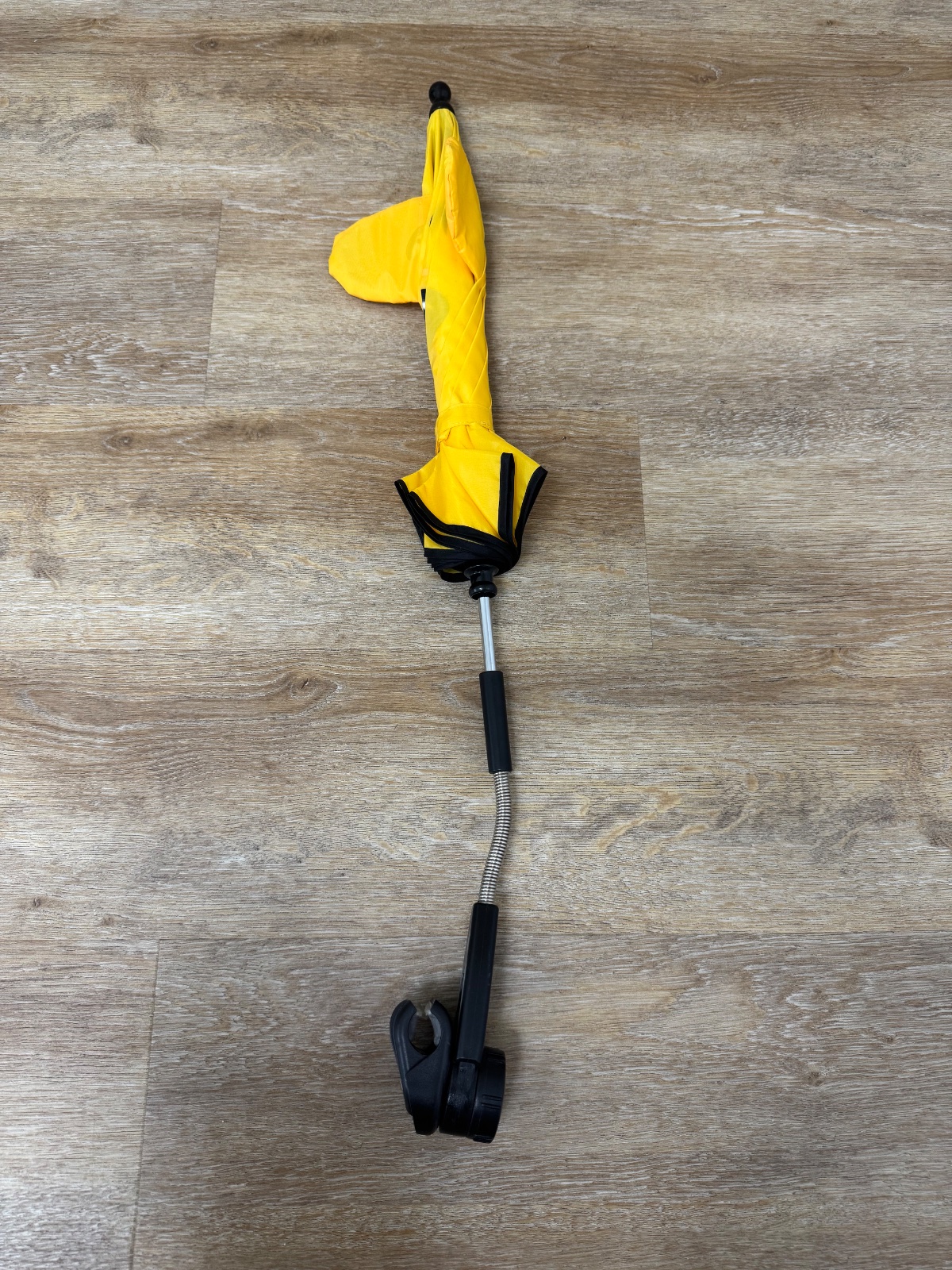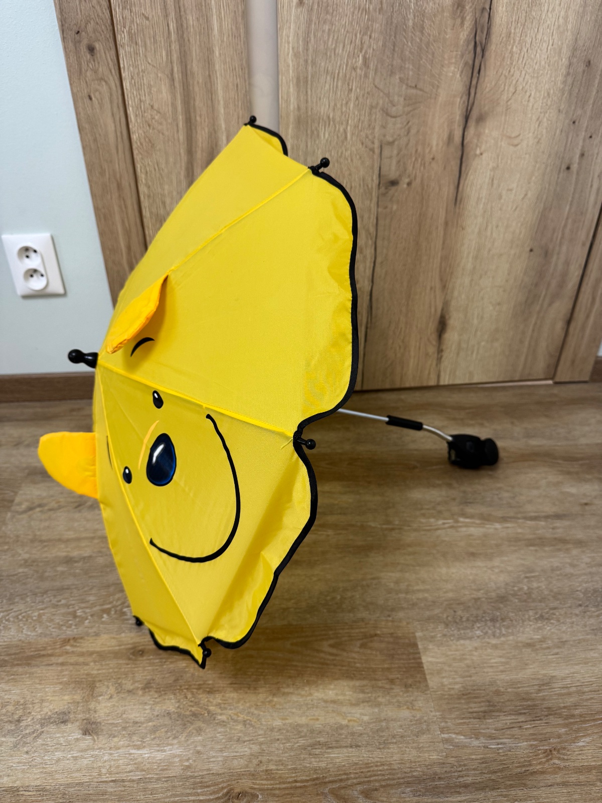 Ponúkam žltý slnečník na kočíky/ golfáče. Má obrázok macka, bol pár krát použitý, a trošku sa odlupuje silikón vo vnútri úchytu. No naďalej v peknom stave. Poštovné podľa taríf.
