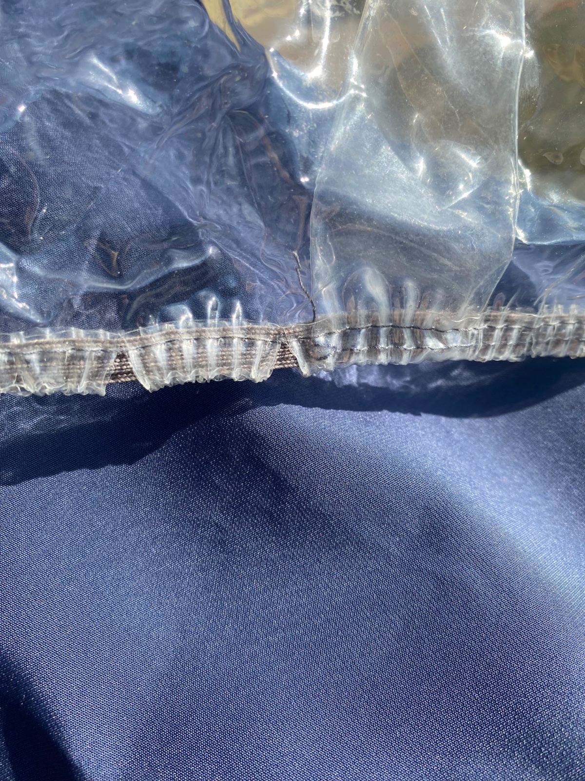 Stav na foto - v mieste gumičky, ako sa napína a sťahuje. tak sú dierky, ale sa preštwpenou častou to už nepokračuje. Na jednom mieste je natrhnutie (všimla som si to až pri fotení, lebo viac bola zložená v taške, ako používaná). Určite ešte splní svoj účel.