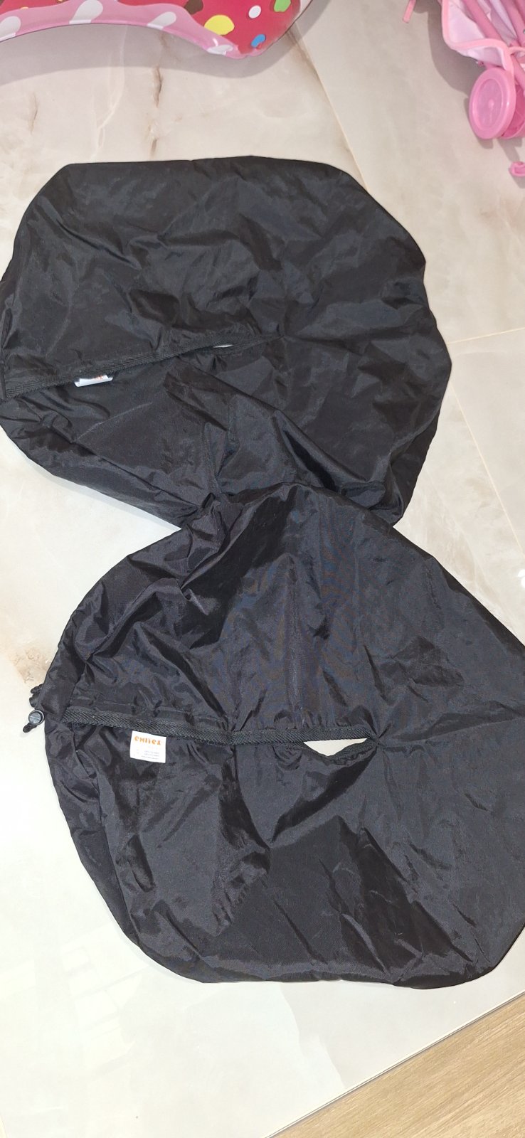 Predám nepoužité návleky na kolesá na kočík. Ideálne na jeseň, zimu. Netečie z kolies do auta.. priemer obalu 30 CM ale sedia aj na menšie kolesá, majú gumičky a sťahovacie šnúrky.