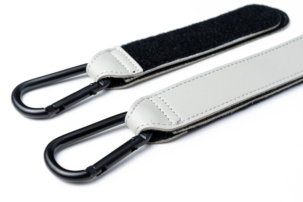 Tento praktický doplnok umožňuje jednoduché a bezpečné pripevnenie tašiek na plienky či iných tašiek ku kočíku. Háčiky sú vyrobené z vysoko kvalitnej umelej kože, ktorá zaisťuje odolnosť a dlhú životnosť.