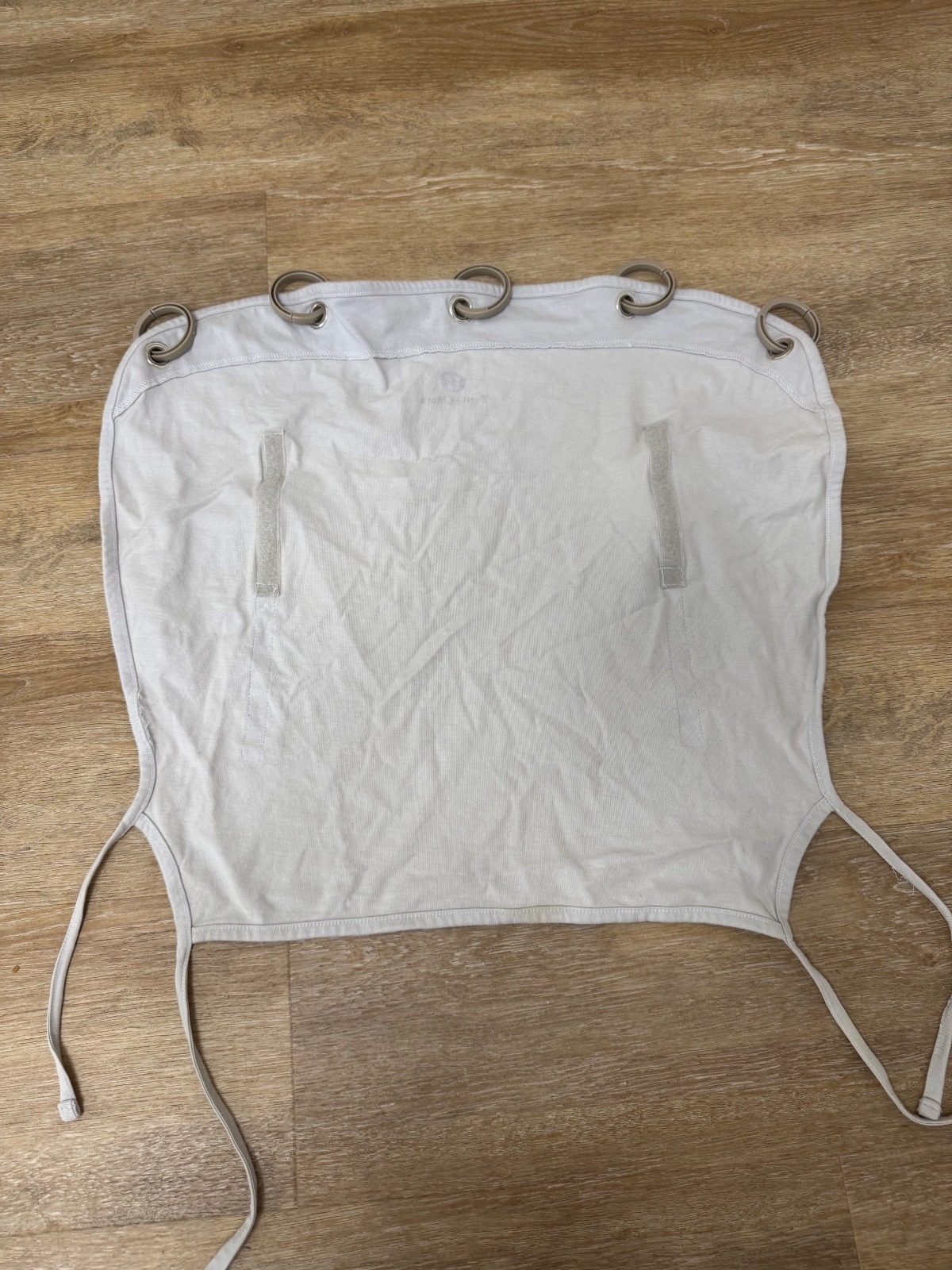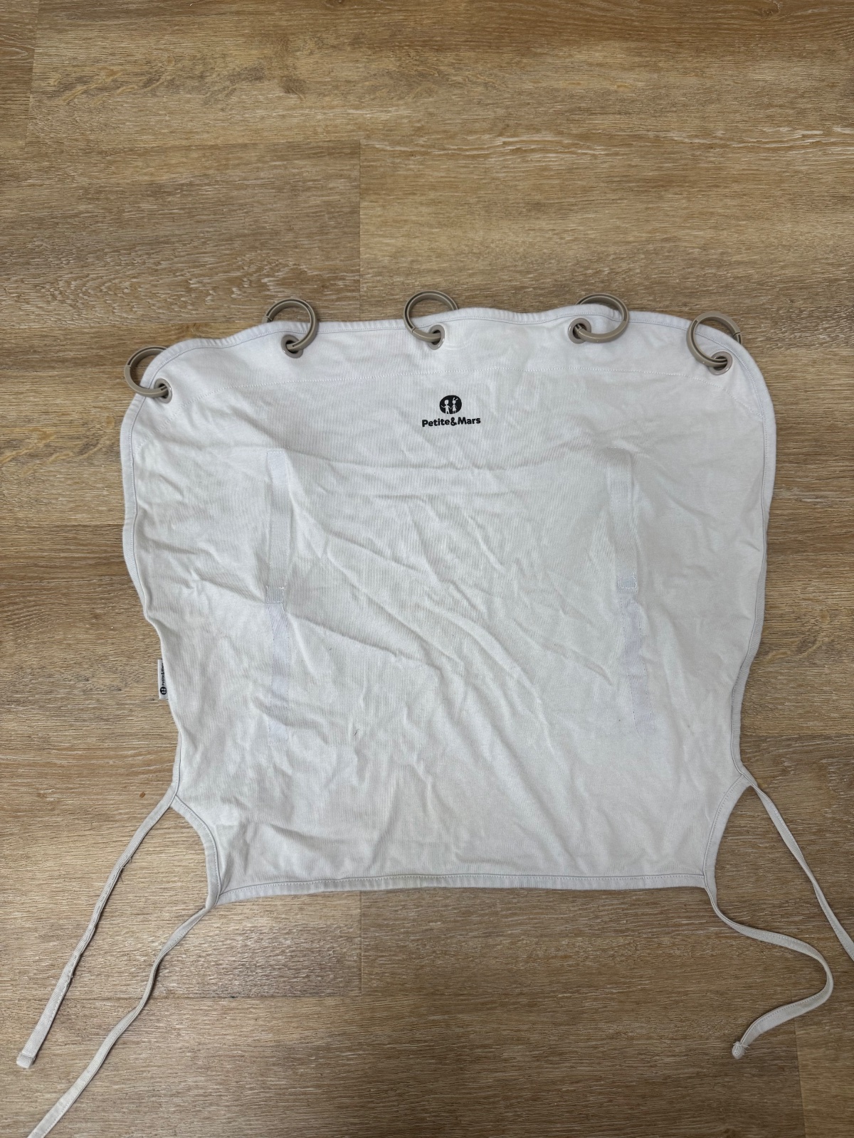 Ponúkam peknú praktickú slnečnú clonu do kočíka / autosedačky značky Petite and Mars. Je taká biela až svetlosivá. Je v používanom ale dobrom stave, akurát odpáraný suchý zips na jednej strane, nebráni v používaní. Má UV ochranu. Poštovné podľa taríf.