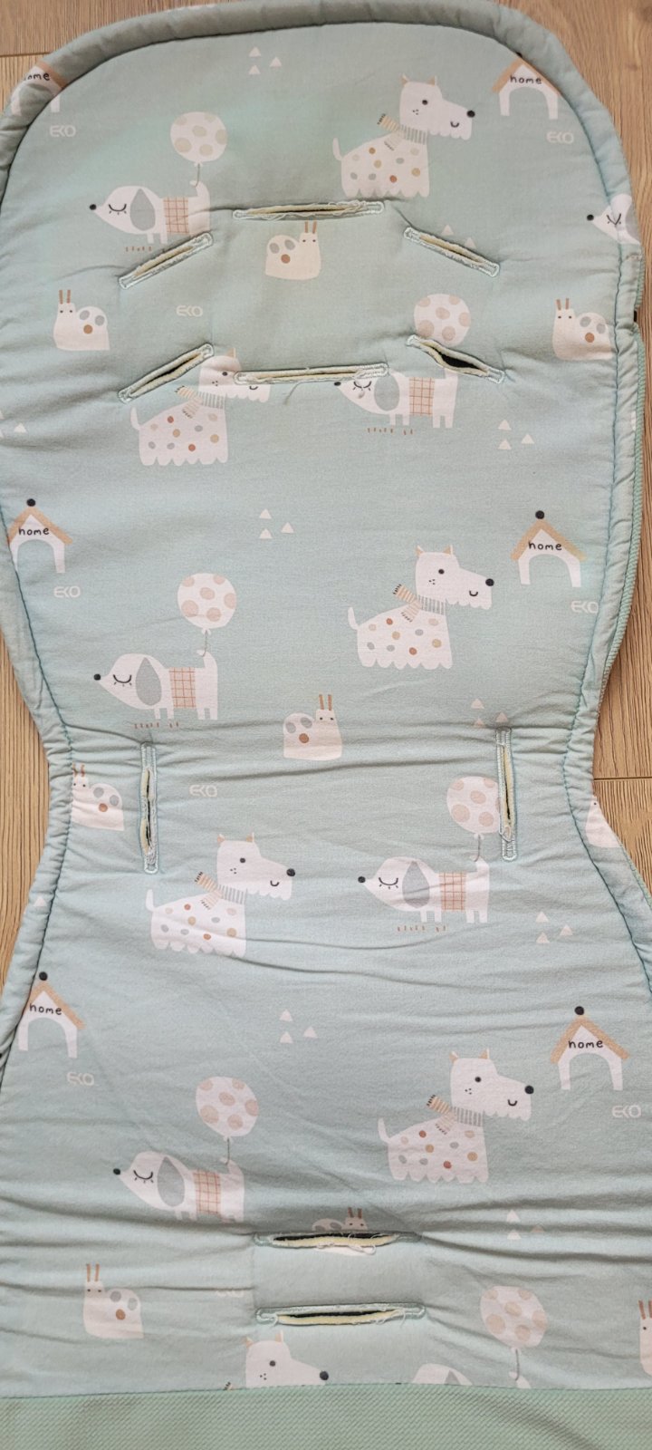Zvyšuje pohodlie pri jazde po nerovnom teréne. Vložka je univerzálne použiteľná na akýkoľvek kočík. Dokonale sa prispôsobí kočíku a dieťaťu. Kvôli rôznym šírkam bezpečnostných popruhov v kočíku sú otvory zašité. Ak chcete výrobok prispôsobiť kočíku, vystrihnite otvory na príslušných vyšitých miestach.
