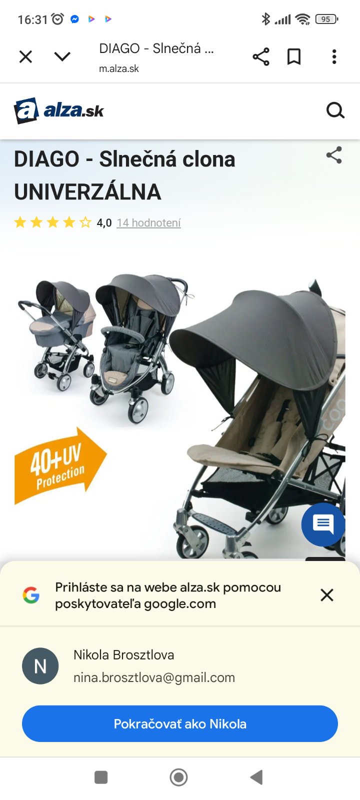 Slnečná clona na kočík univerzálna