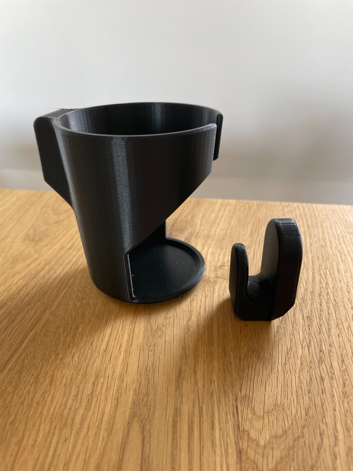 Držiak na nápoje v sade s praktickým háčikom na zavesenie drobností alebo tašky.