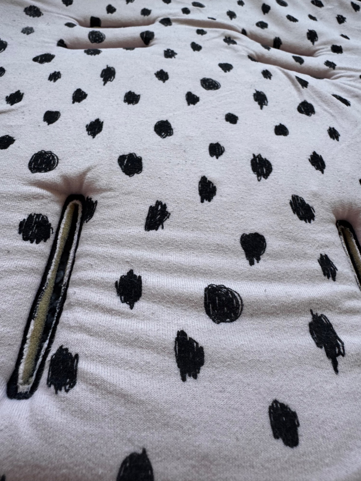 Obojstranná podložka do kočíka 84x34 (v najširšom bode), výplň 1cm molitan (nie vatelin), spodná časť pod nožičkami nepremokava umývateľna látka, zvyšok bavlna, v ponuke oveľa viac látok a vzorov.....