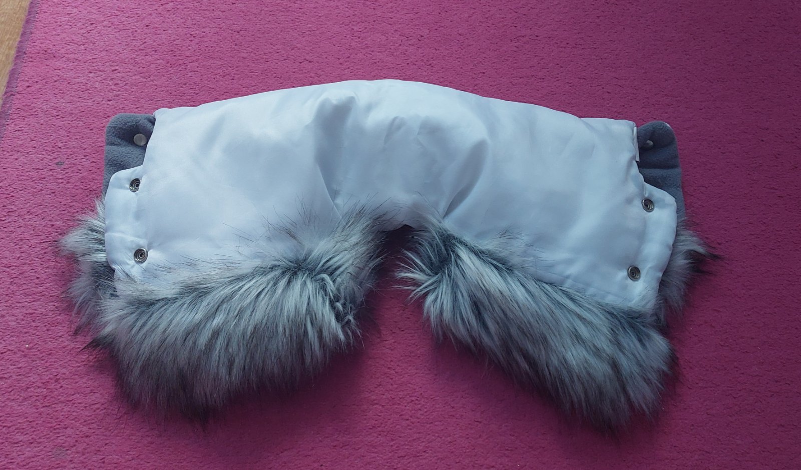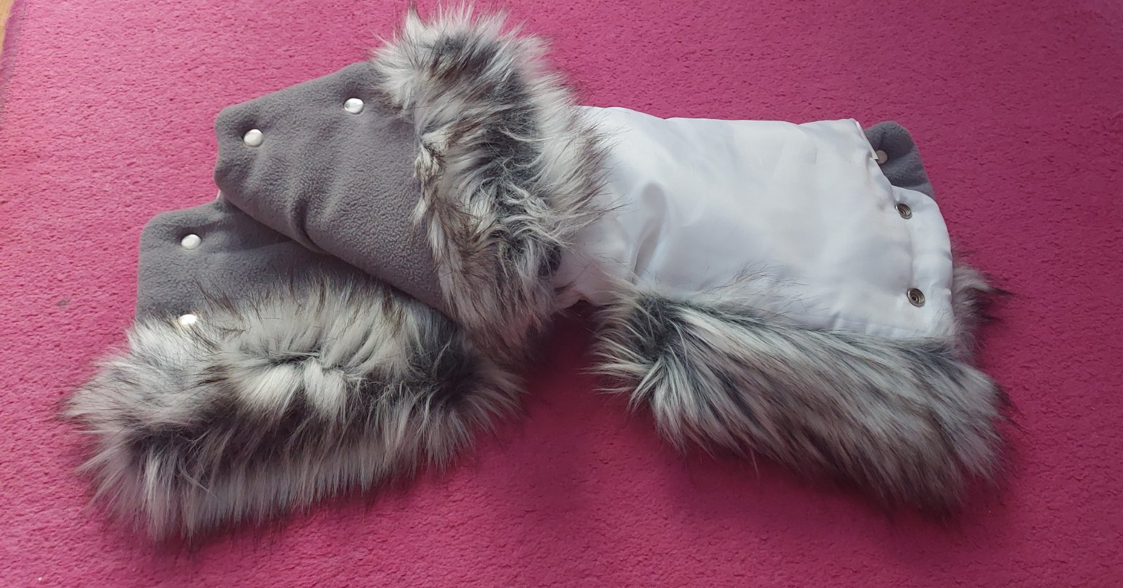 Rukavice na madlo akéhokoľvek kočíka, či vozíka alebo aj bicykla. Pripevnenie pomocou suchých zipsov. Lepšie a teplejšie ako klasický rukávnik, lebo každá ruka má svoj "domček".