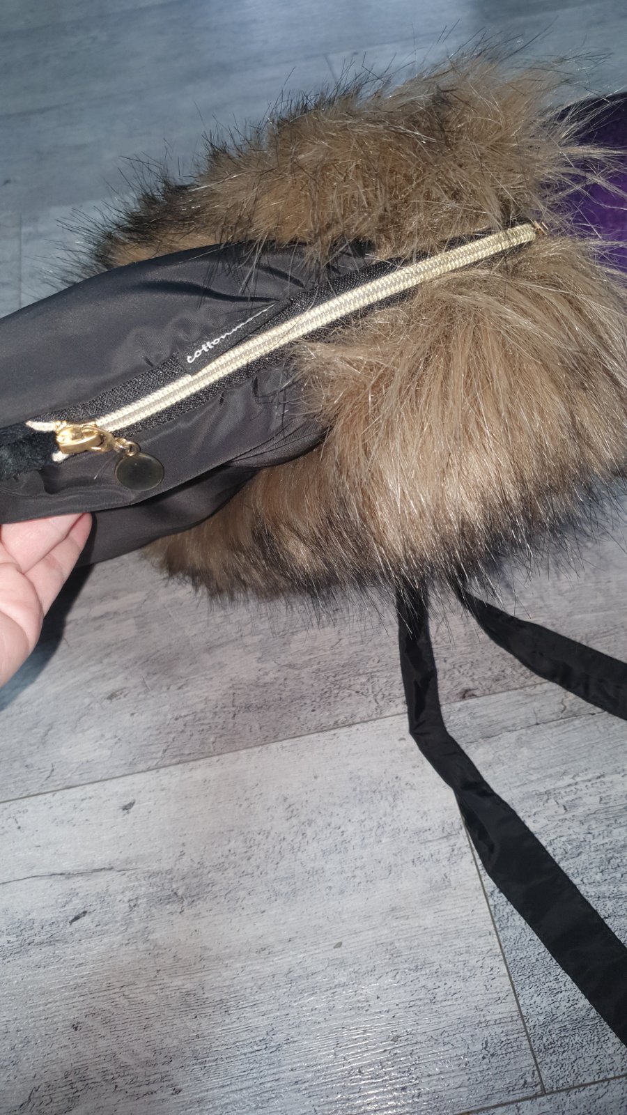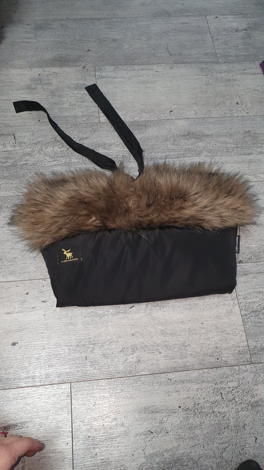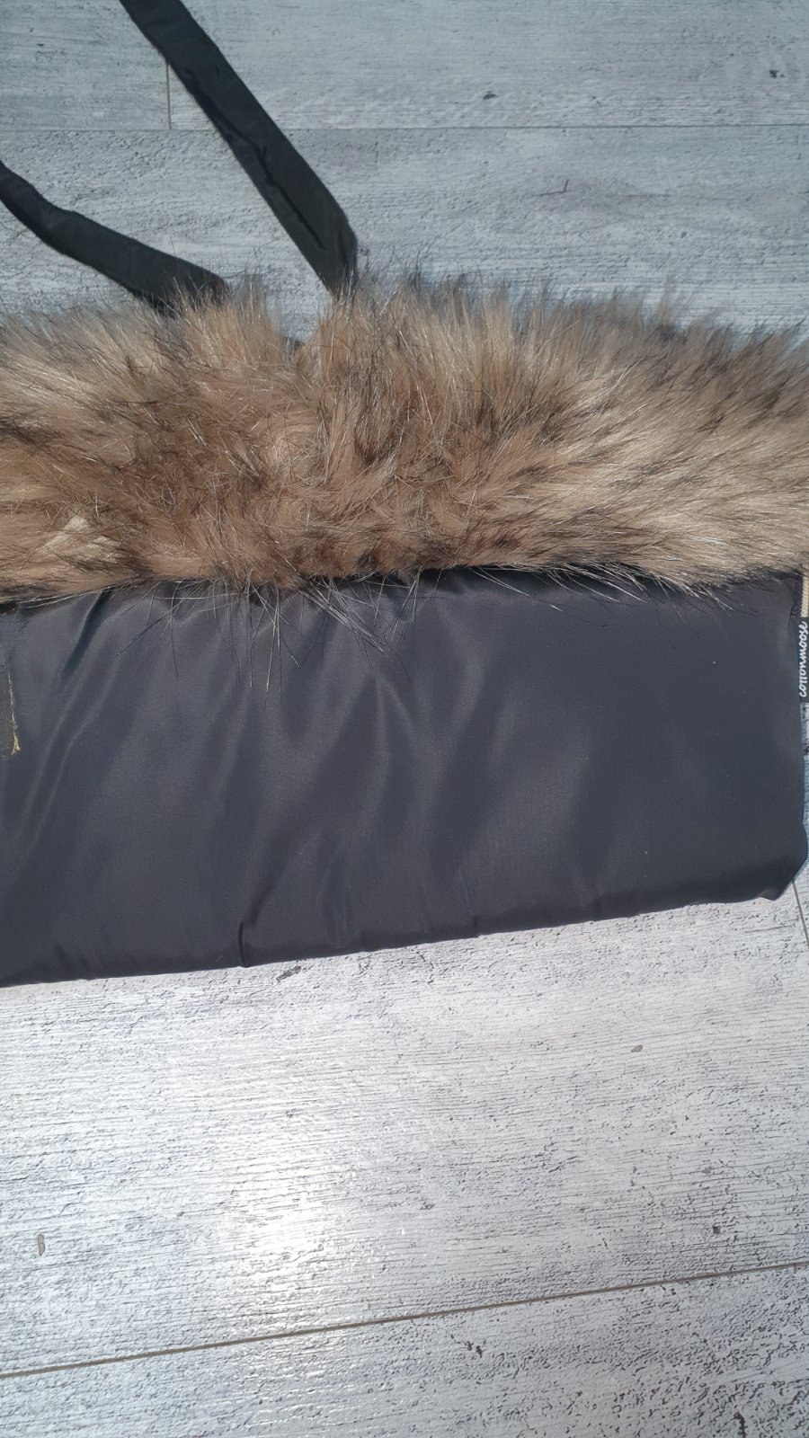 Predam univerzalny rukavnik na kocik. Z vonkajsej strany je cierny, z vnutornej bezovy.