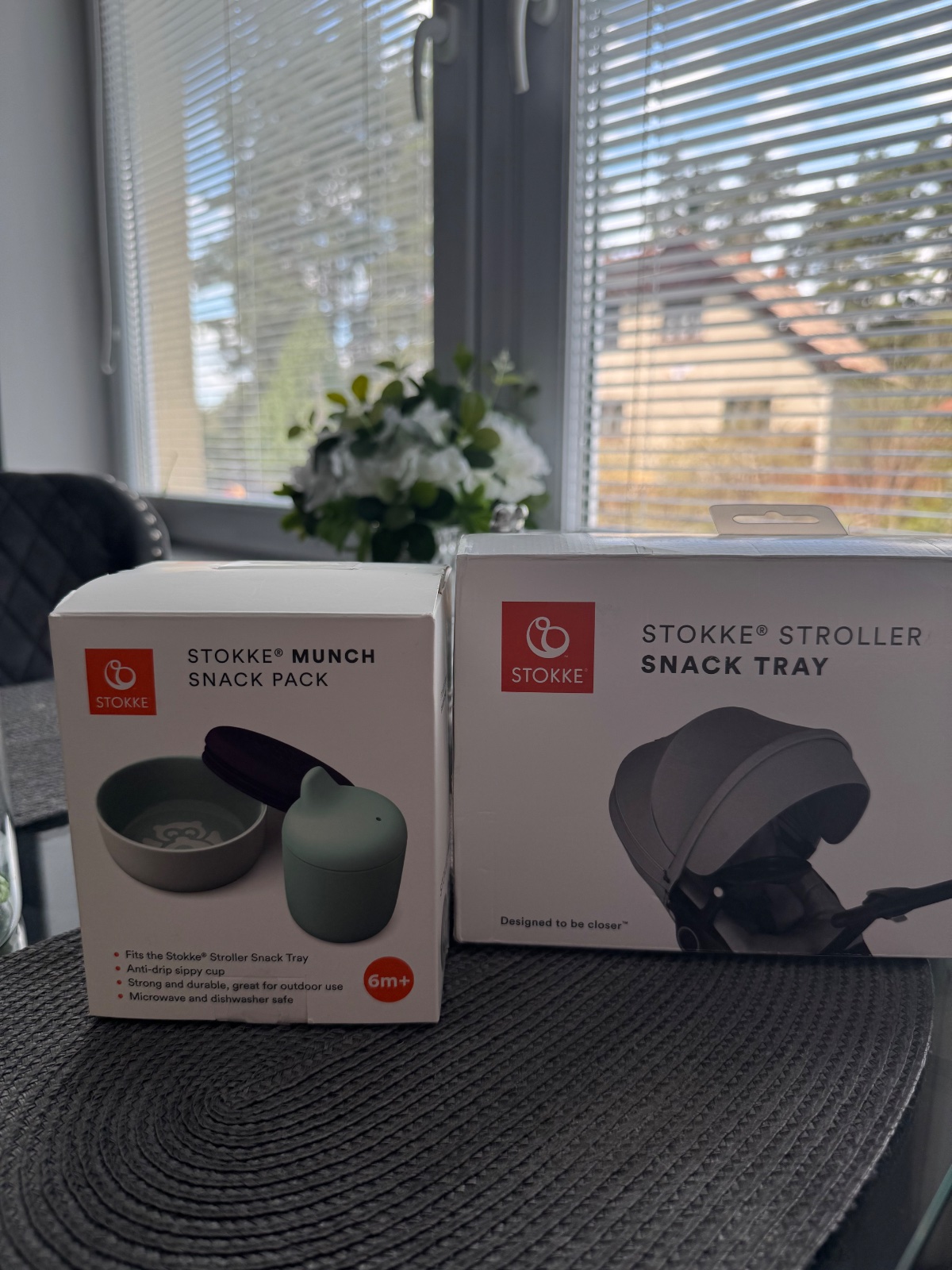 Predám úplne nový stokke snack tray ku ktorému sú nadstavce na všetky modely kocikov stokke, a ku snack tray aj stokke munch box tiež úplne nové zabalené v krabiciach.