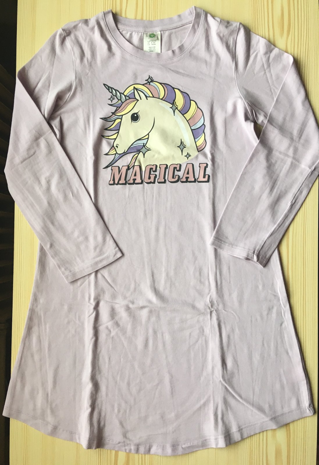 Nočná košieľka s jednorožcom vo výbornom nosenom stave vo veľkosti 134/140, zodpovedá skôr tej 140.