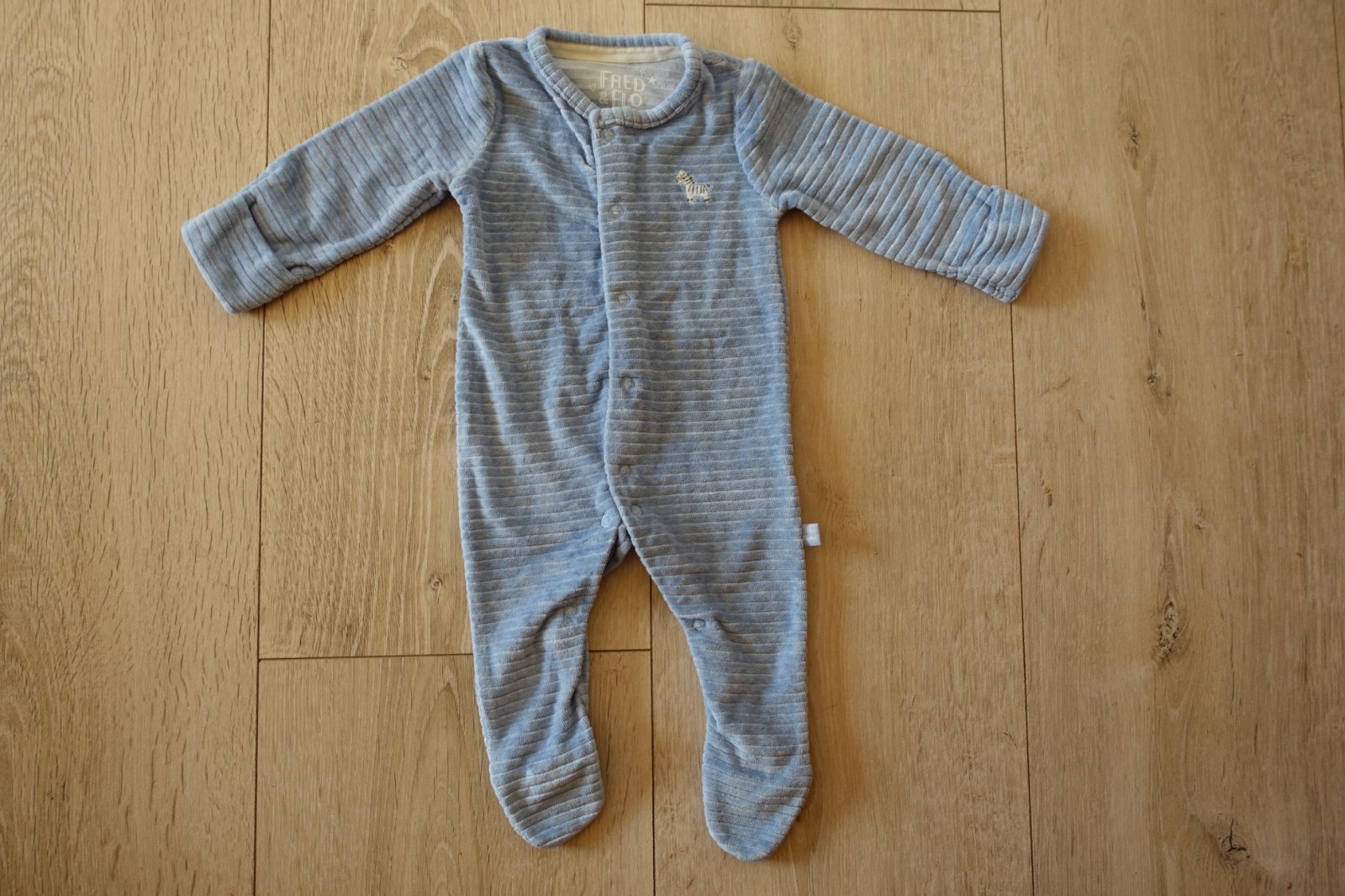 Predám krásny teplý pásikavý overalík so zebričkou. Nemá žiadne poškodenie. Mali sme ho 1x, kúpený neskoro, už nám bol malý, ale je top stav. Zahnuté rukáviky na rúčkach sa dajú stiahnuť a urobia rukavičky. Dĺžka od pliecka po pätu je 50 cm a od pliecka po rozkrok je 36 cm.