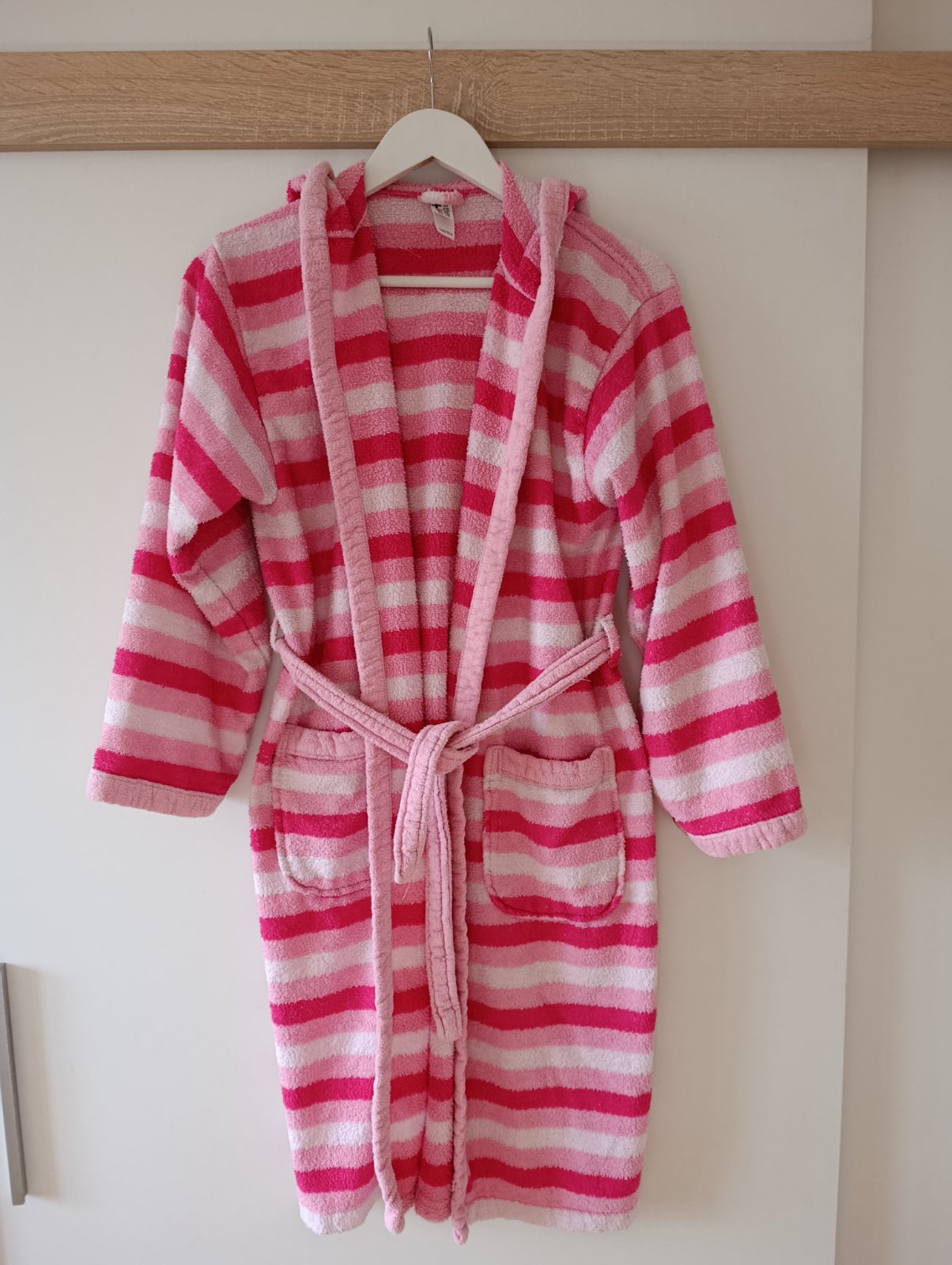Mäkučký dievčenský župan v krásnej ružovej farbe s hviezdickovou potlacou.Nosený ale v super stave,bez poškodenia.