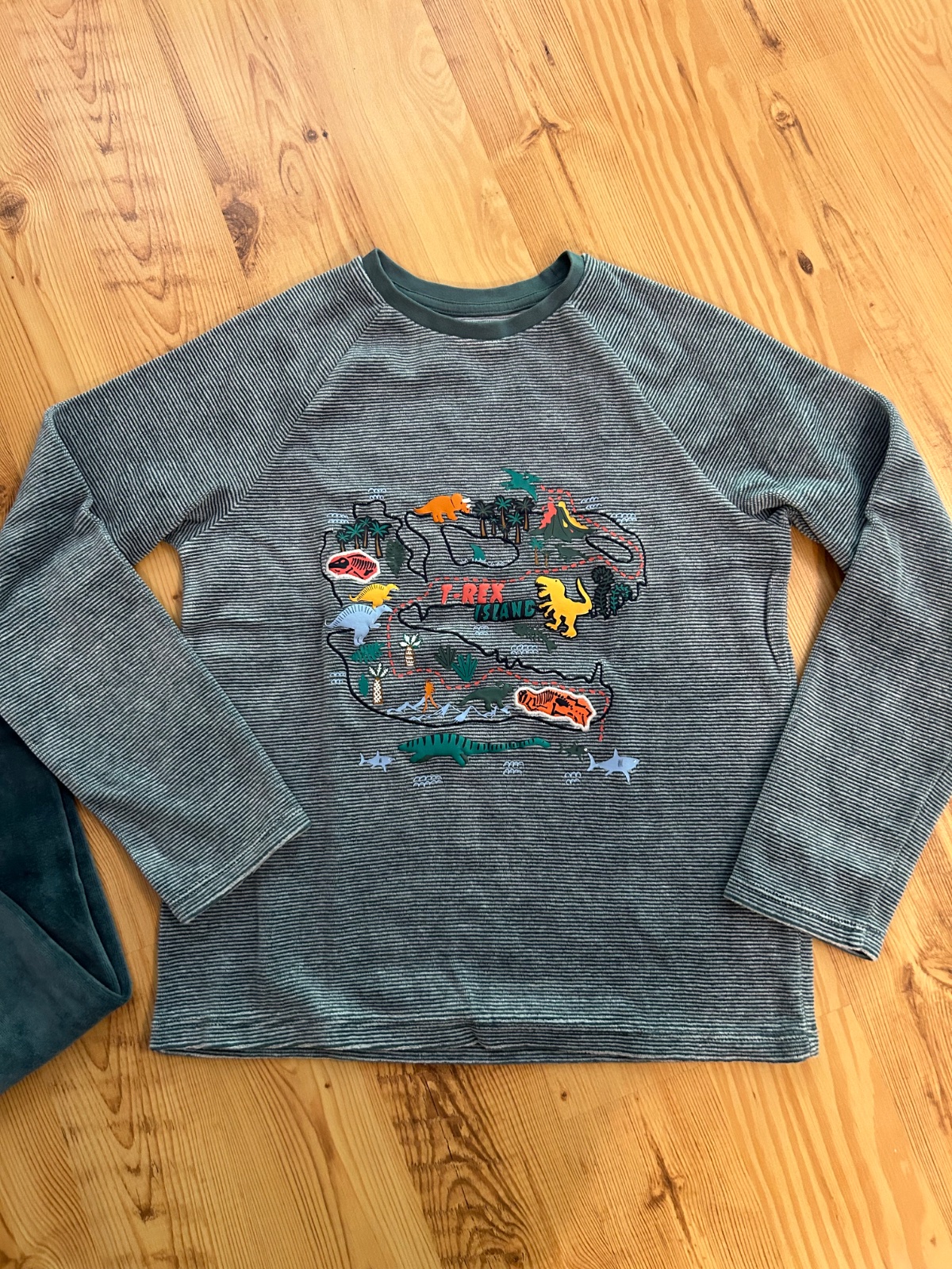 Pyžamo s dinosaurami, bavlnené, zamatovo mäkkučké, oblečené len párkrát, keďže sme dostali mierne malé, top stav