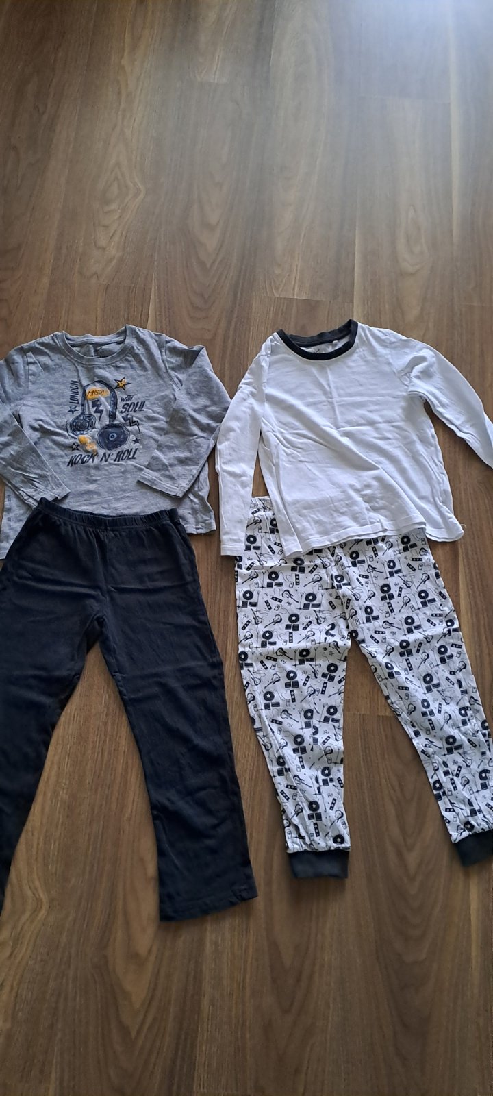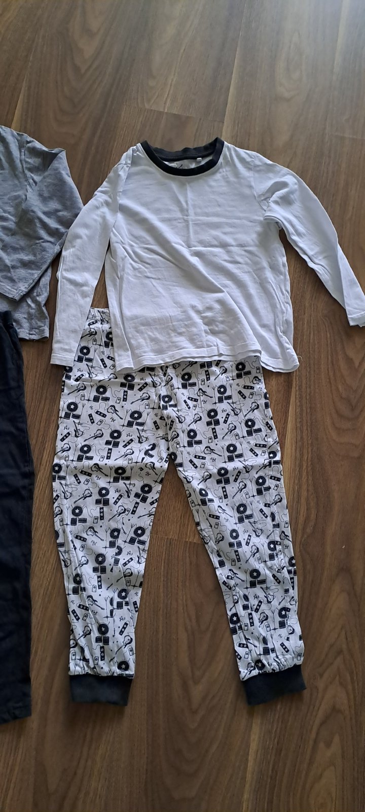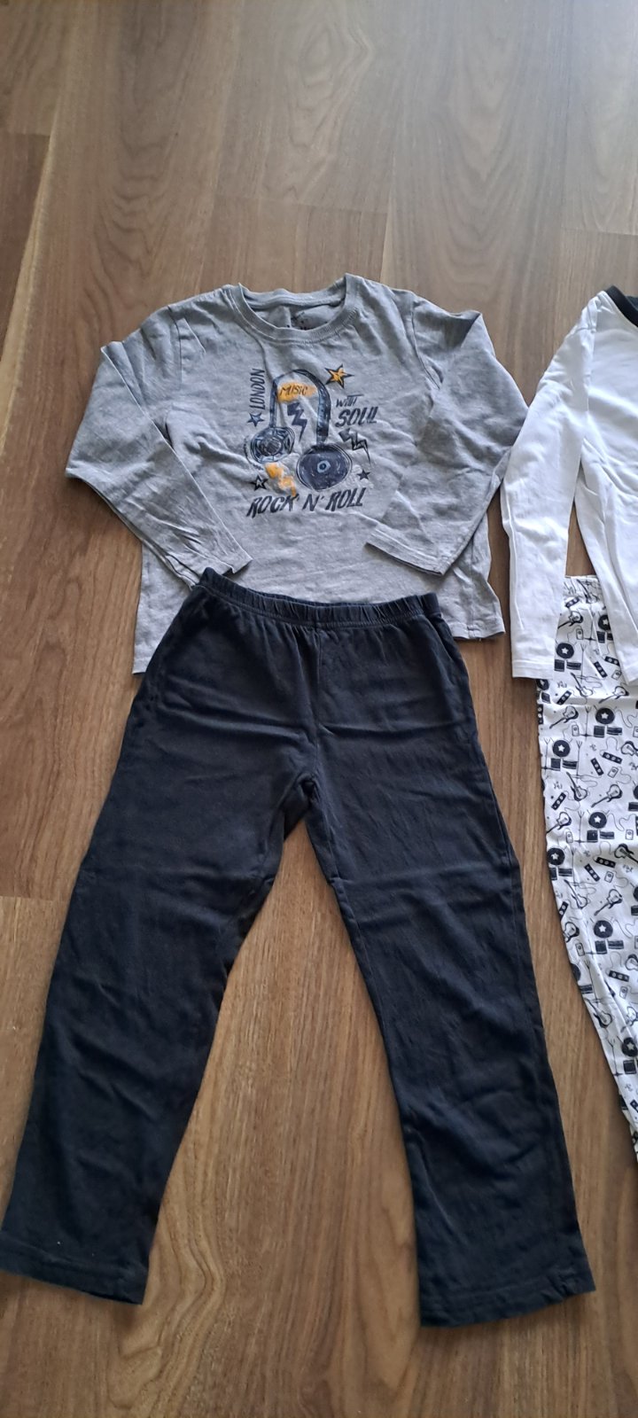 Ponúkam na predaj dlhé pyžamo MUSIC (čierne nohavice-šedé tričko s potlačou, biele nohavice s potlačou-biele tričko), potlač hudobné nástroje, zn. LUPILU, veľkosť 110-116 (5-6 rokov), bavlna, nosené, ale bez poškodení. Cena 4€/2 x SET.