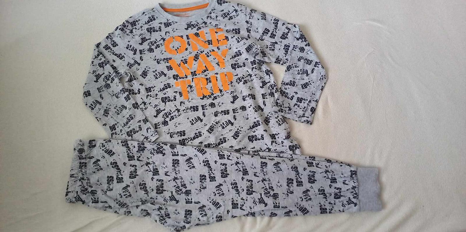 pyžamo ,,Coccodrillo", veľkosť 128/134, rukáv 43 cm, nohavice 76 cm, pekný stav bez poškodení, len oranžové písmená sú popraskané, cena 6 €