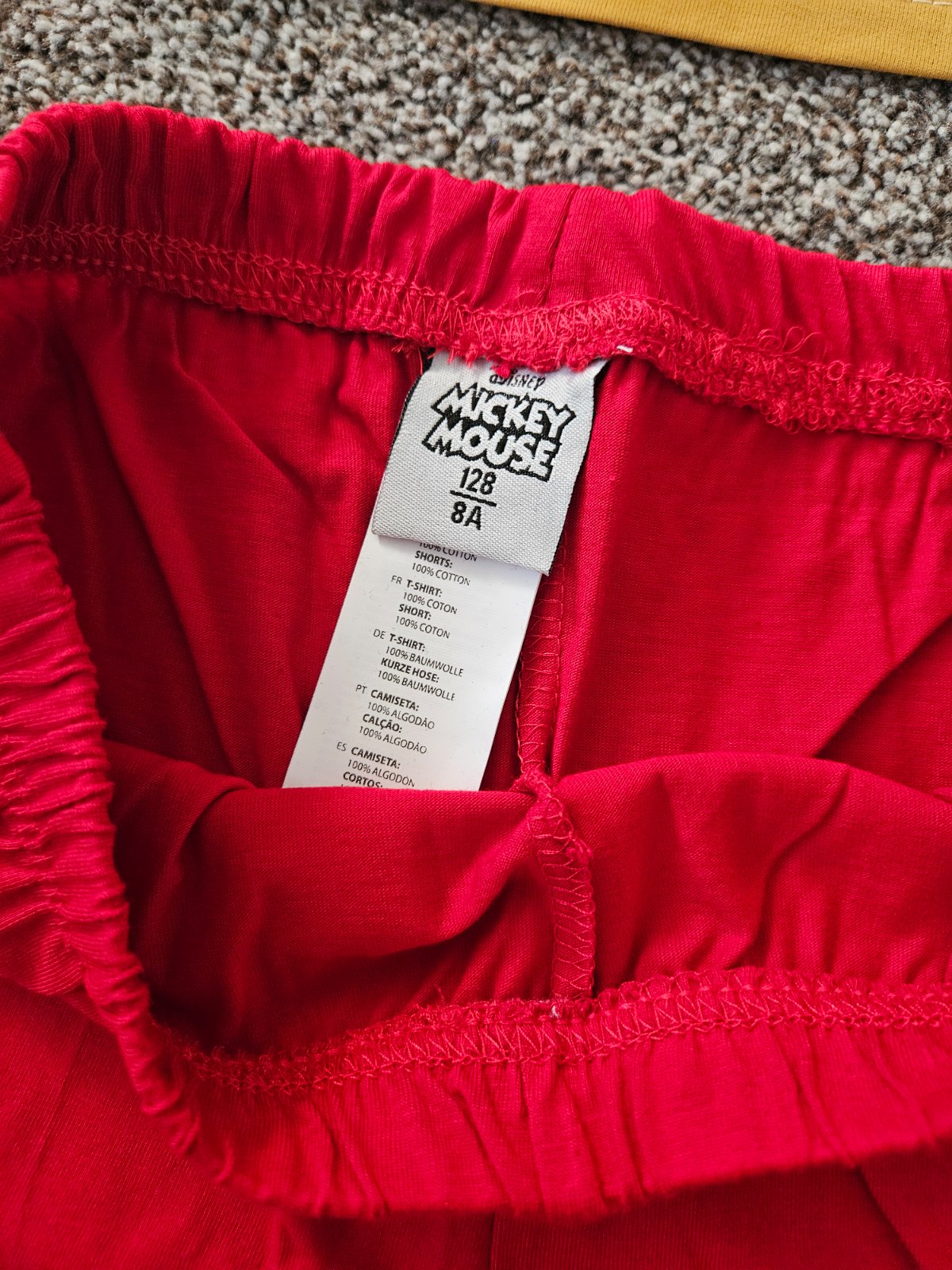 Nove detske pyzamo Mickey kratke v. 128, rozmery su na foto, 1p0 % bavlna, nenosene, neskusane, top stav bez poskodeni